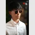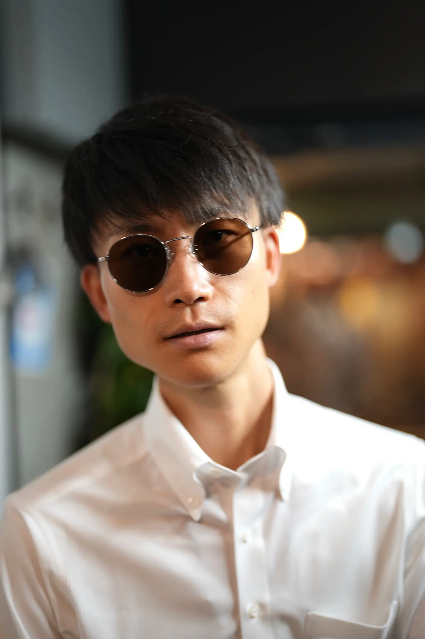 ご要望は、カリフォルニアの日差しに耐えられる色で、使い回しの効くものということでしたので、少し大ぶりのシューロンのメガネに最も濃い85%のカラーをオススメさせていただきました。