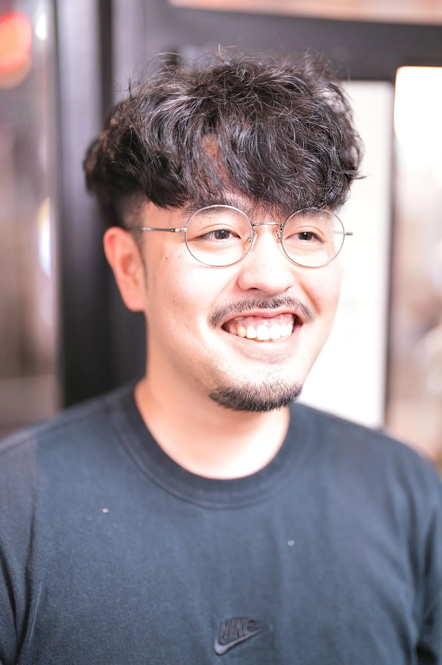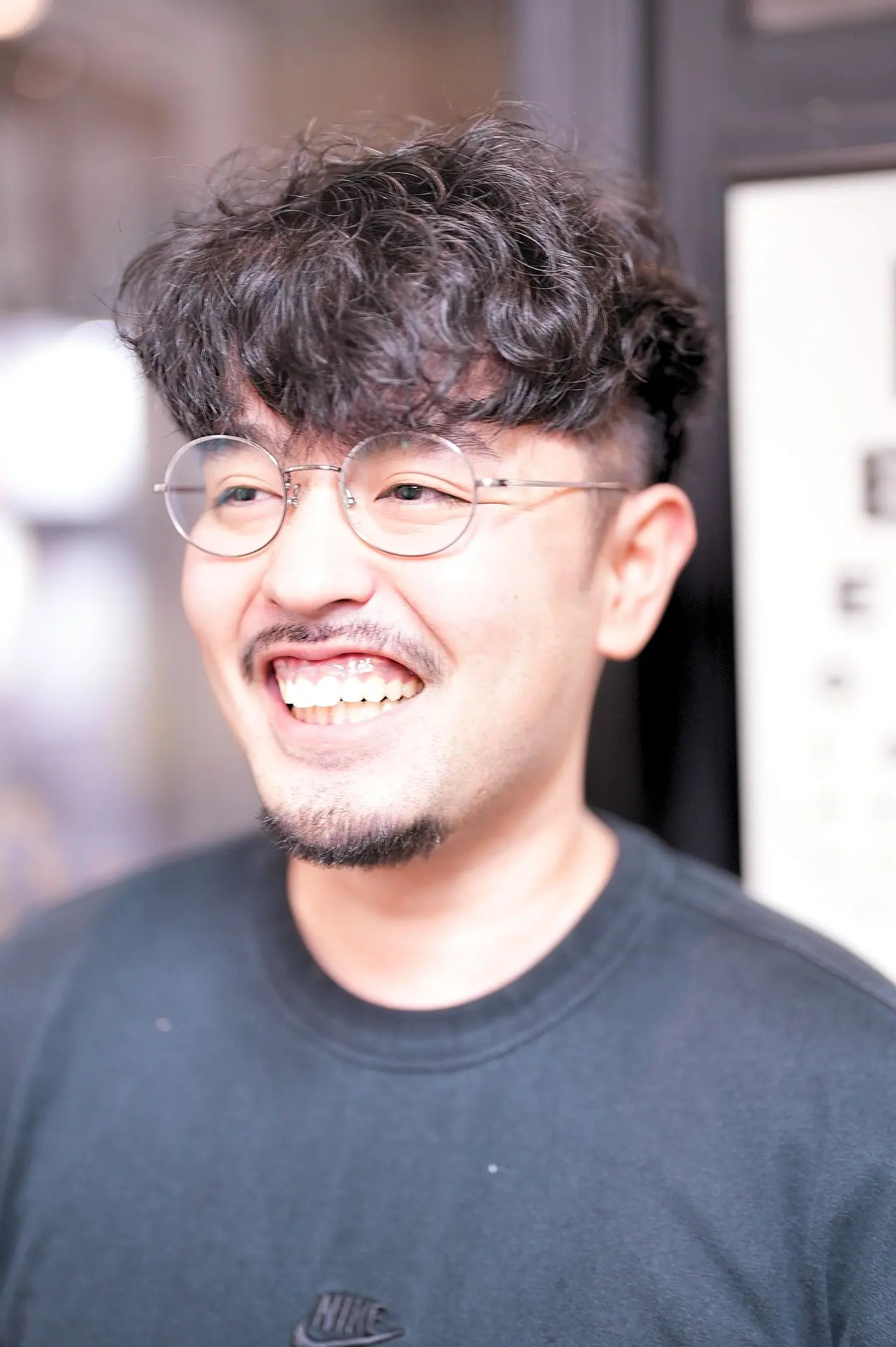 シンプルなメタルフレームですが、現代の素材や技術によってアップデートされた逸品です。クリングス仕様(可動式)の鼻当ては調整幅があり、素材のピュアチタンは、軽くしなやかですので、快適にかけていただけます。丸みのあるデザインはT様の雰囲気ともとても相性がよく大変お似合いですね。