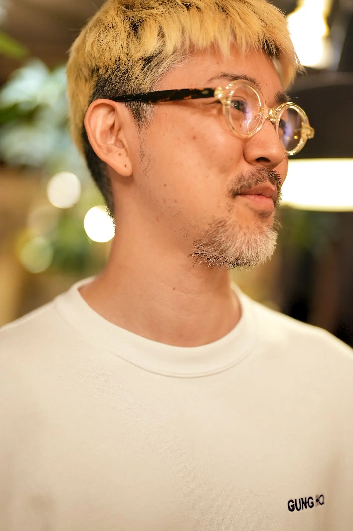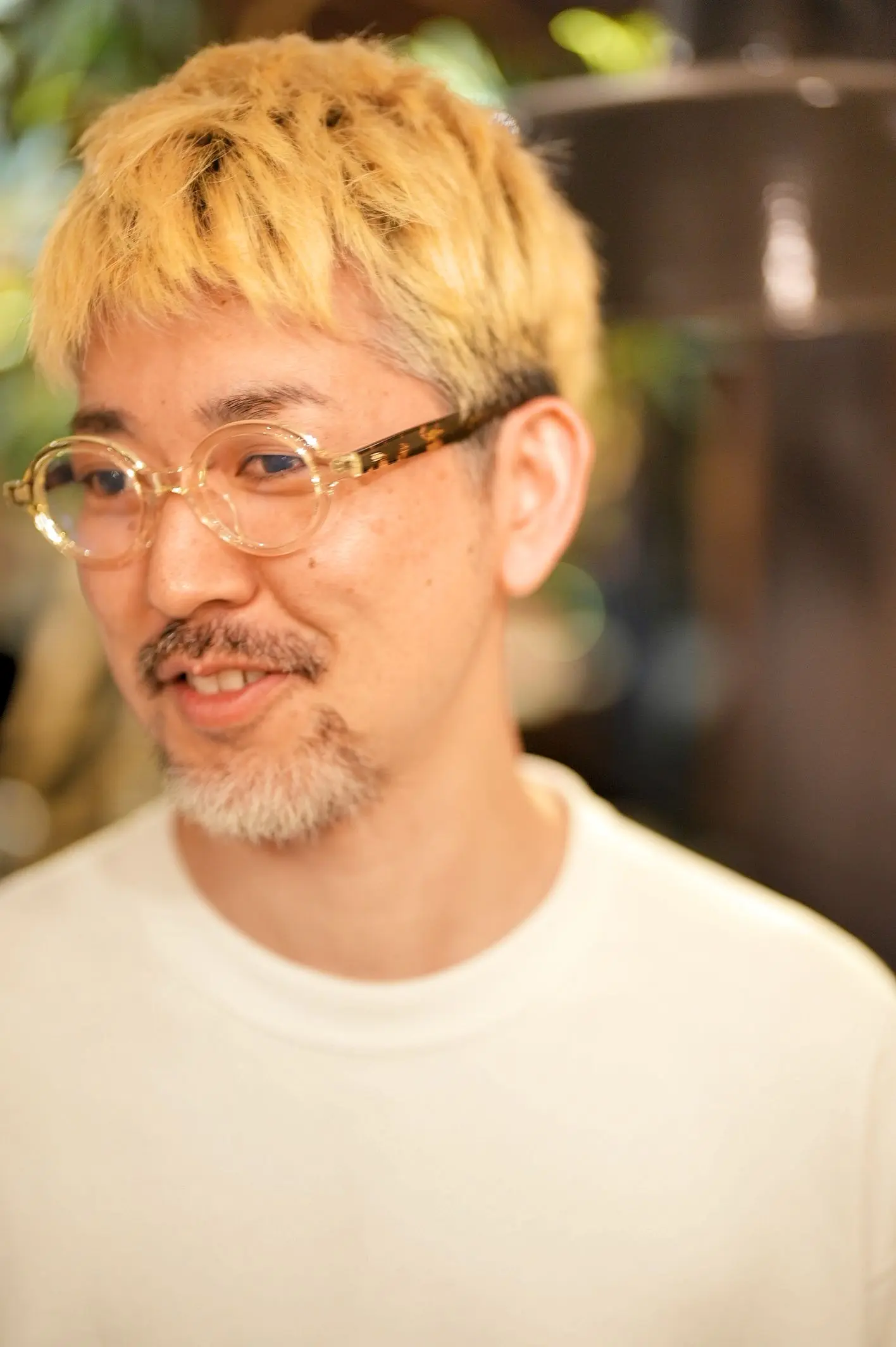 M様は現在、気に入ってお使いいただいているメガネが、ヴィクターアンドロルフの黒縁ウェリントンに調光レンズを入れたものと、金子眼鏡のチタン製一山式メガネ。