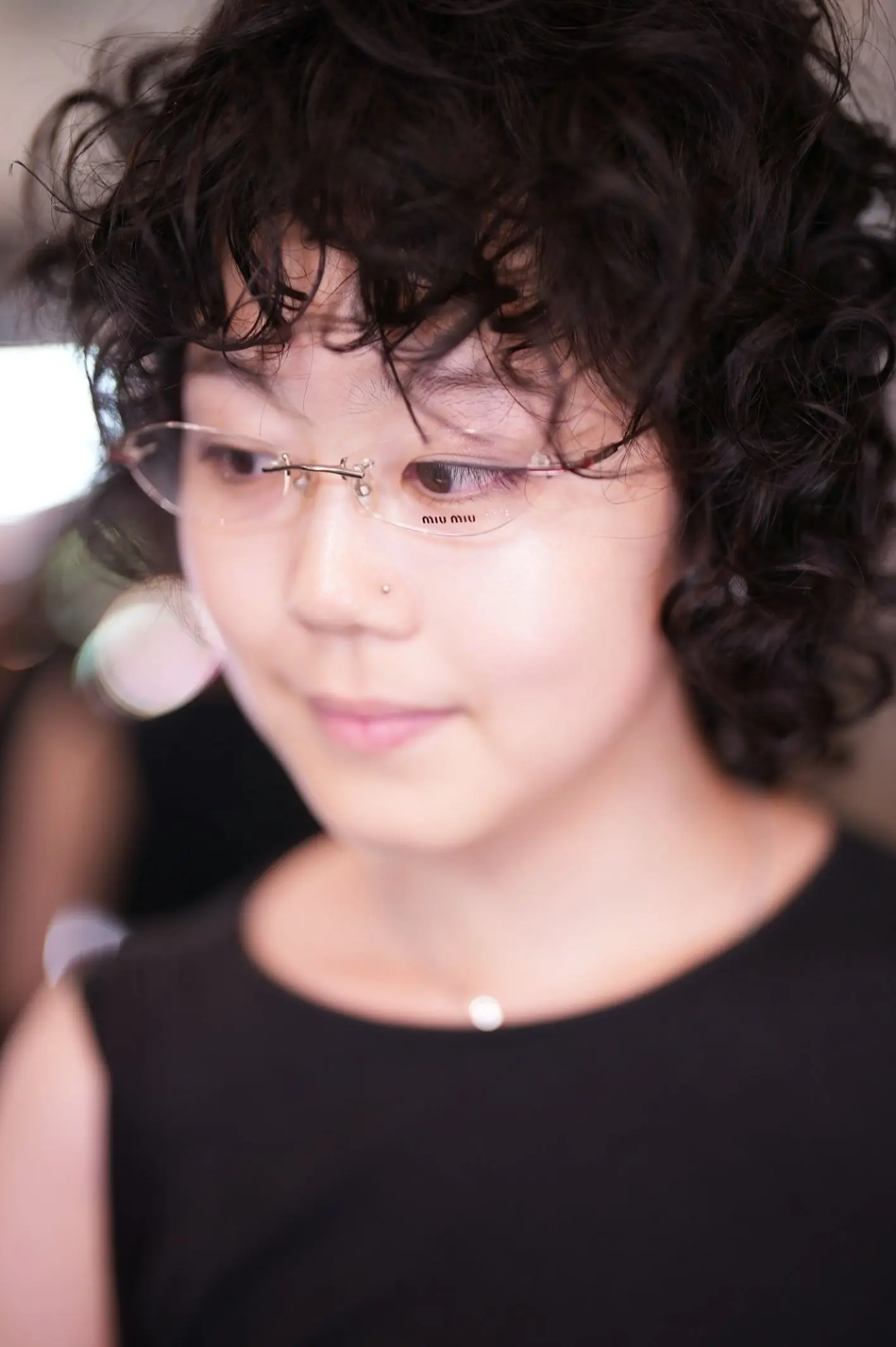 N様、この度は、クラシックな雰囲気ではなく、細身のフレームをお探しとのことでご来店いただきました。、そこで、新宿店のフレームの中から、いくつかご提案させていただいた中で、今回は、こちらのmiu miuの【VMU5BA】ツーポイントフレームを気に入っていただきご購入いただきました。