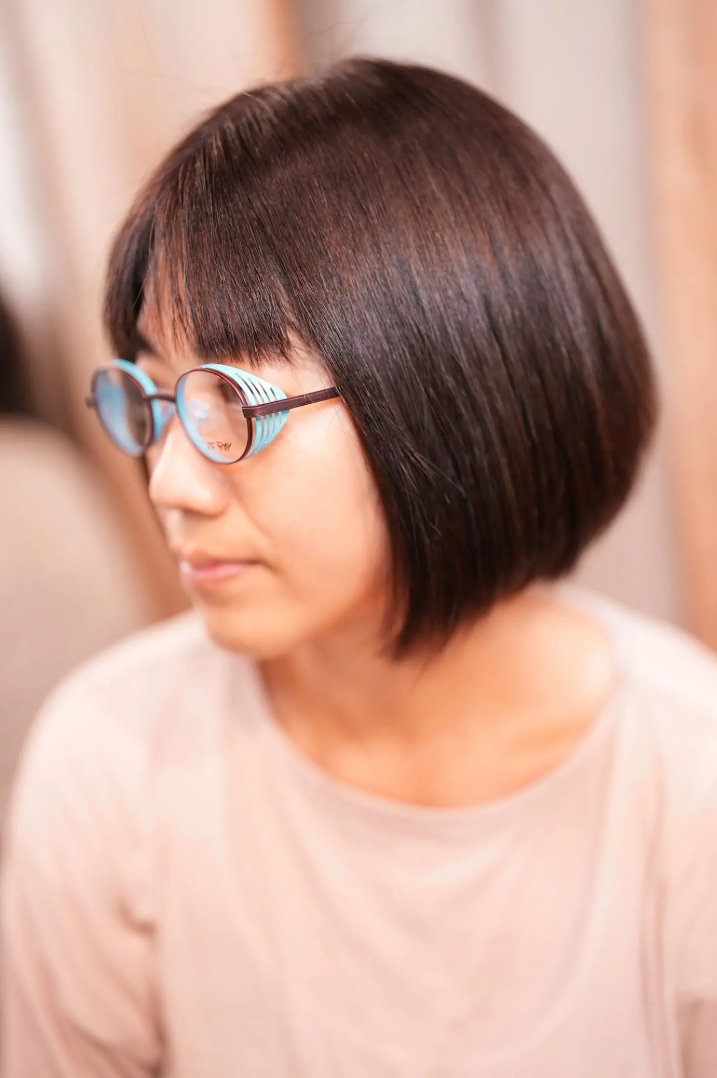 こちらをご試着いただきました、N様です。この度はLINEよりご予約でご来店いただきました。普段はコンタクトレンズをご使用されており、眼鏡はあまり使用されていらっしゃらなかったとのこ、とても久しぶりに眼鏡を新調しようと思い、ご来店いただいたとのことでございました。N様はお顔が小さいため、これまで中々サイズの合うフレームに出会えてこれなかったため、サイズが合い、クラシカルでありながら、少し個性のあるフレームをご希望でございましたので、今回の2本のフレームをお求めいただきましたところ、大変御気に召していただけました。