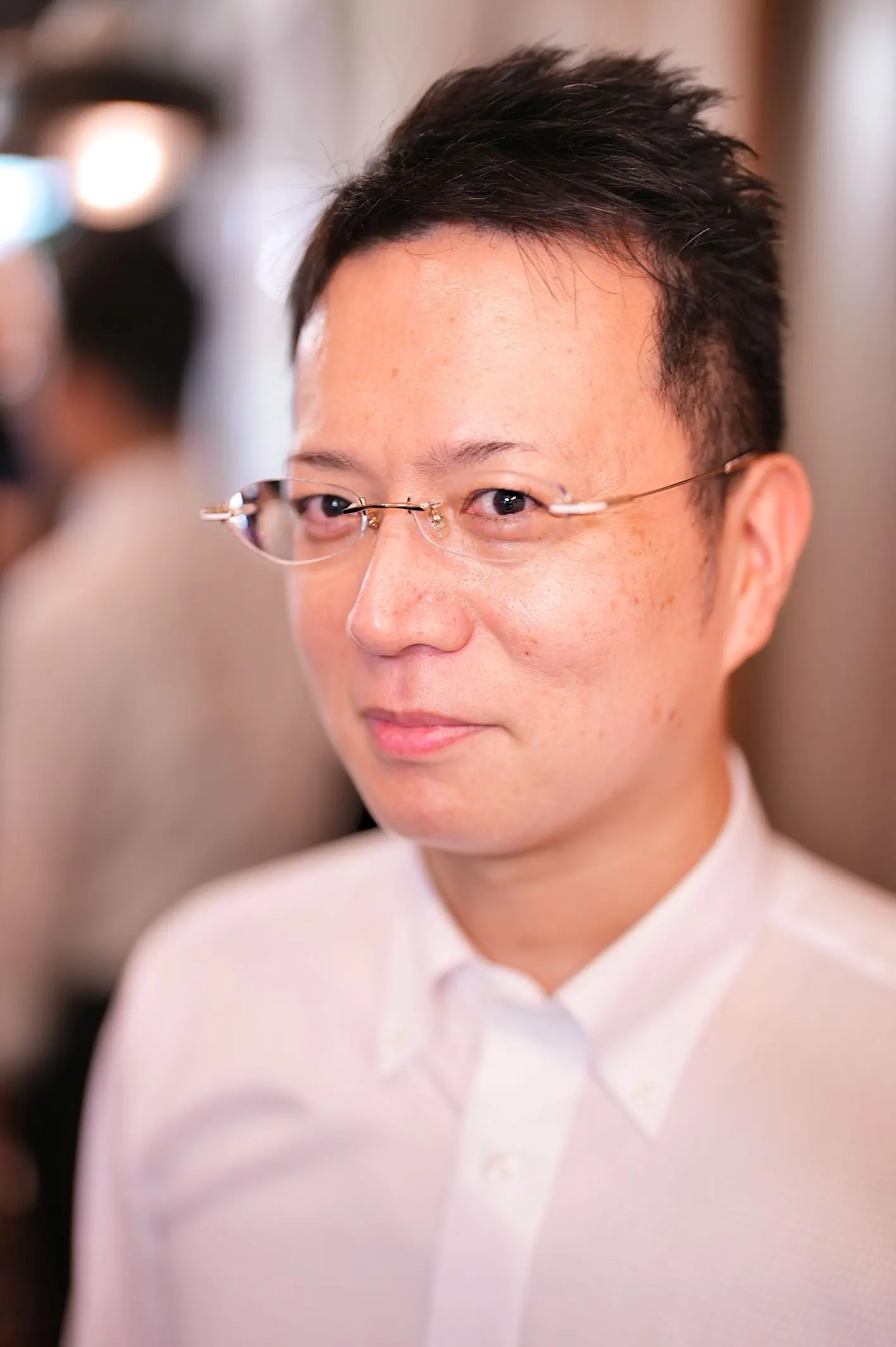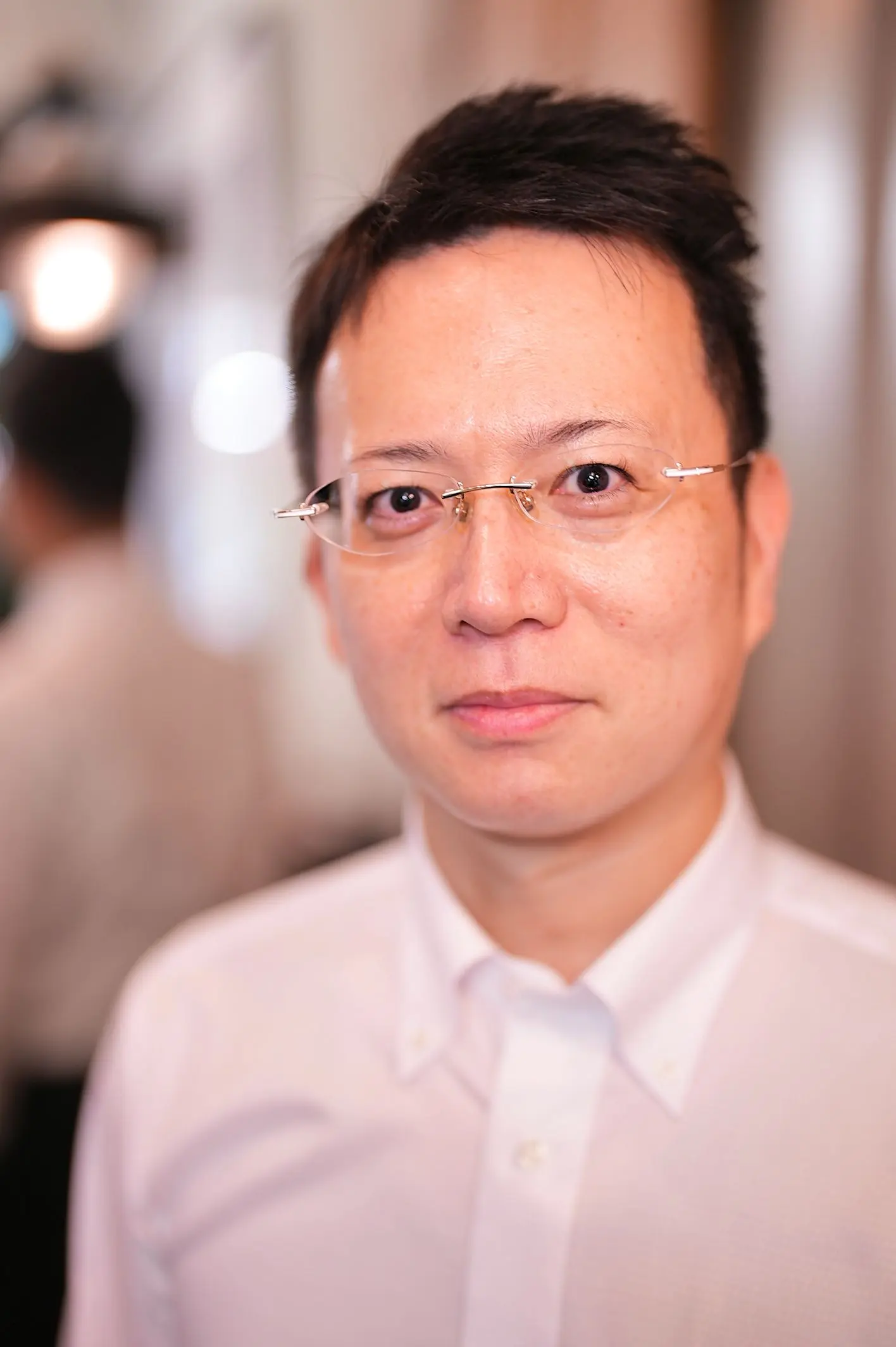 こちらをお求めいただきました、H様です。この度は眼鏡の新調のためご来店いただきました。現在お使いのフレームが999.9のツーポイントタイプのものでございましたので、今回もスタイリッシュなツーポイントをご希望でございました。そのため、こちらのフレームをご提案させていただきましたところ、とても御気に召していただけました。