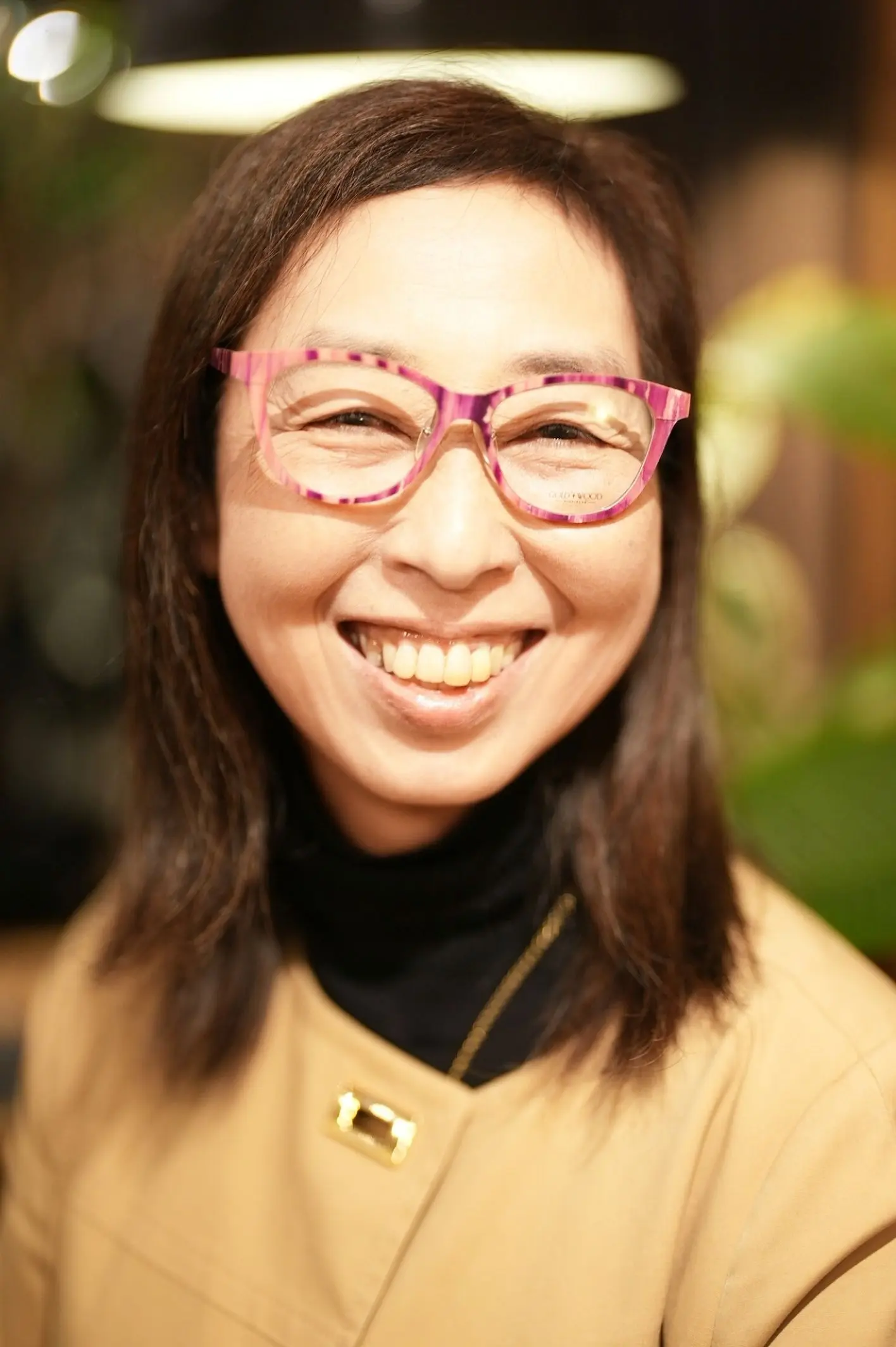 まず、GAIA 03.04 073はルクセンブルク発祥の高級ブランドGOLD&WOODによる逸品。美しい自然素材と洗練されたクラシカルなデザインが融合したフレームで、木材やバッファローホーンを使用し、職人が一点一点丁寧に仕上げています。T様の気品あふれる雰囲気にぴったりで、とてもお似合いでした。