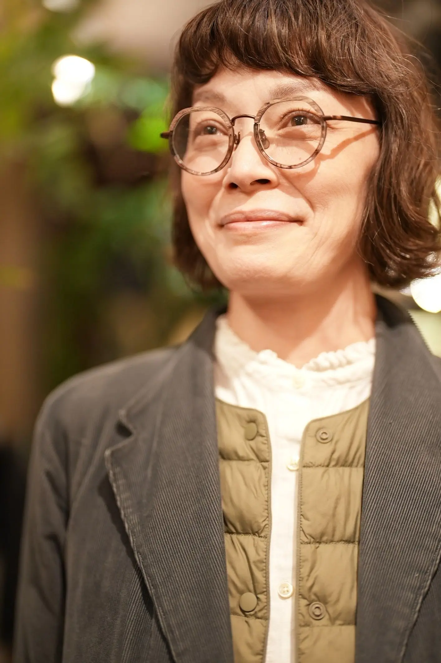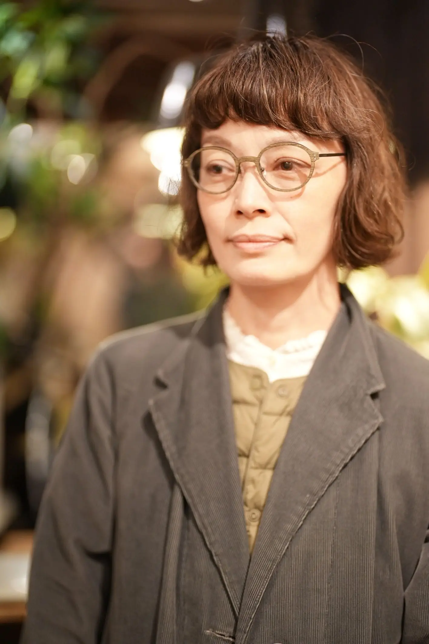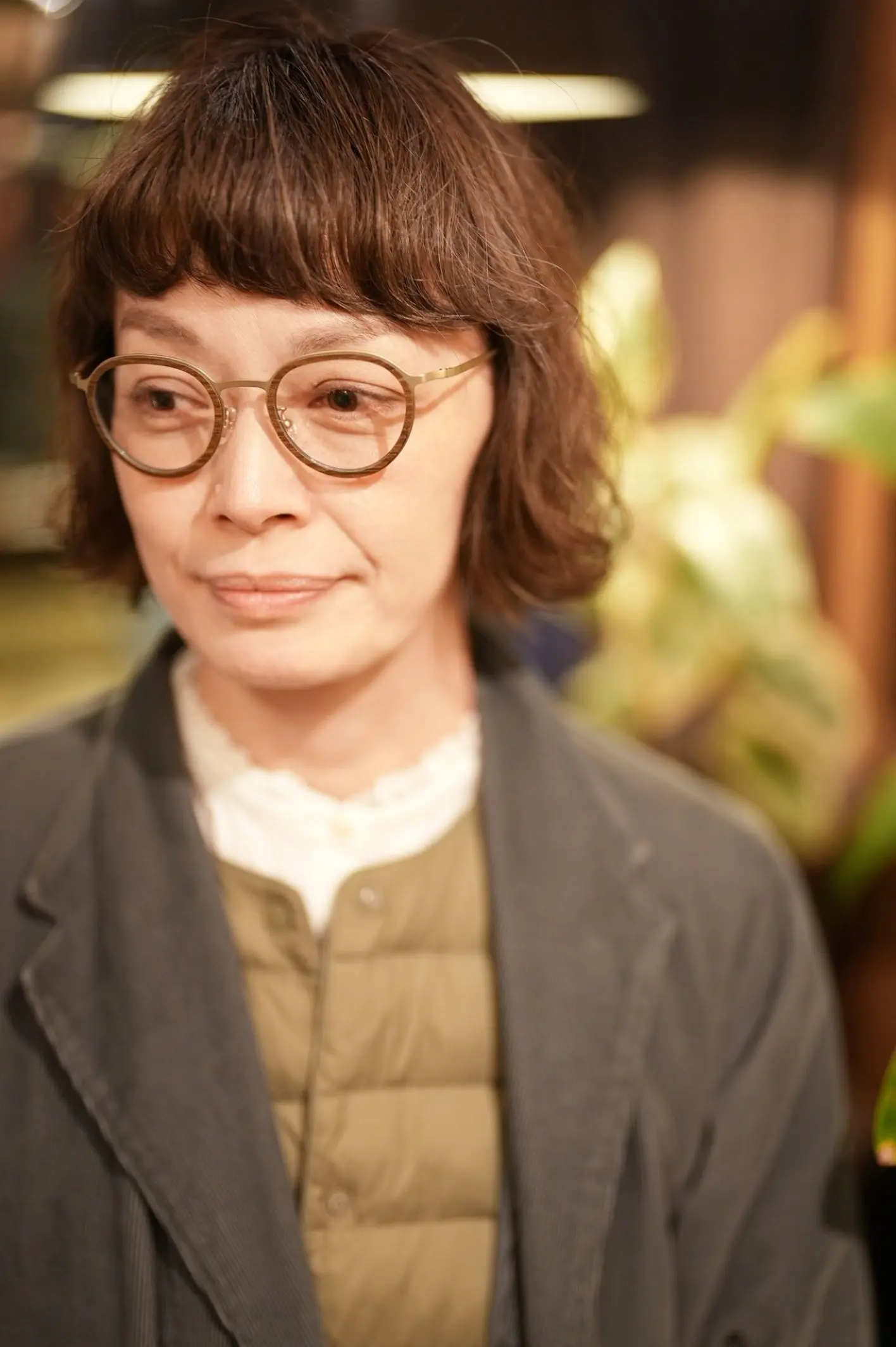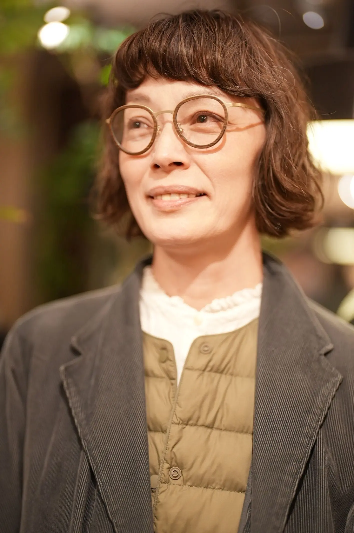 I様の落ち着いたナチュラルな雰囲気にぴったりで、フレームの独特な模様や質感がさらに素敵な印象を引き立てていると思います。