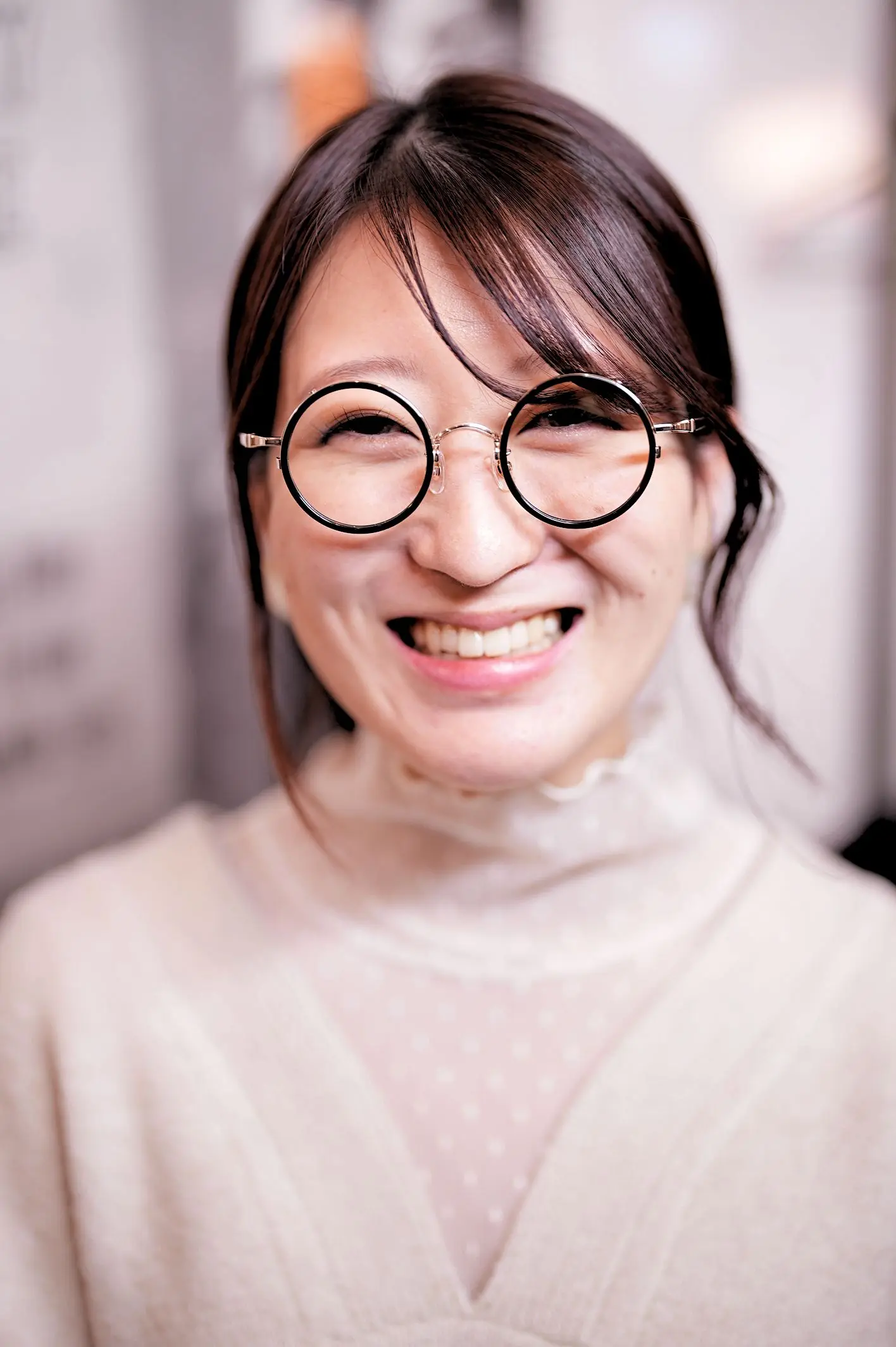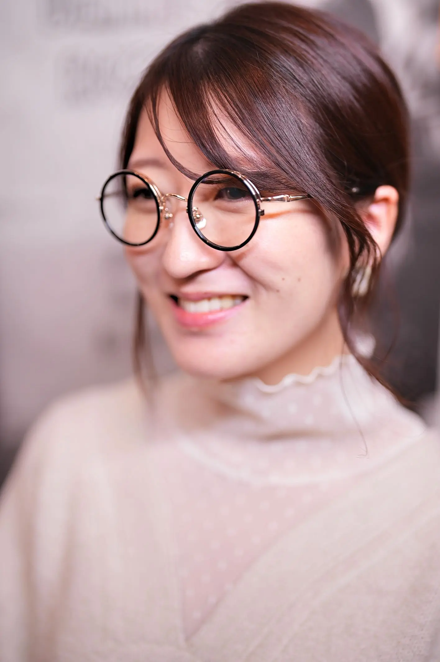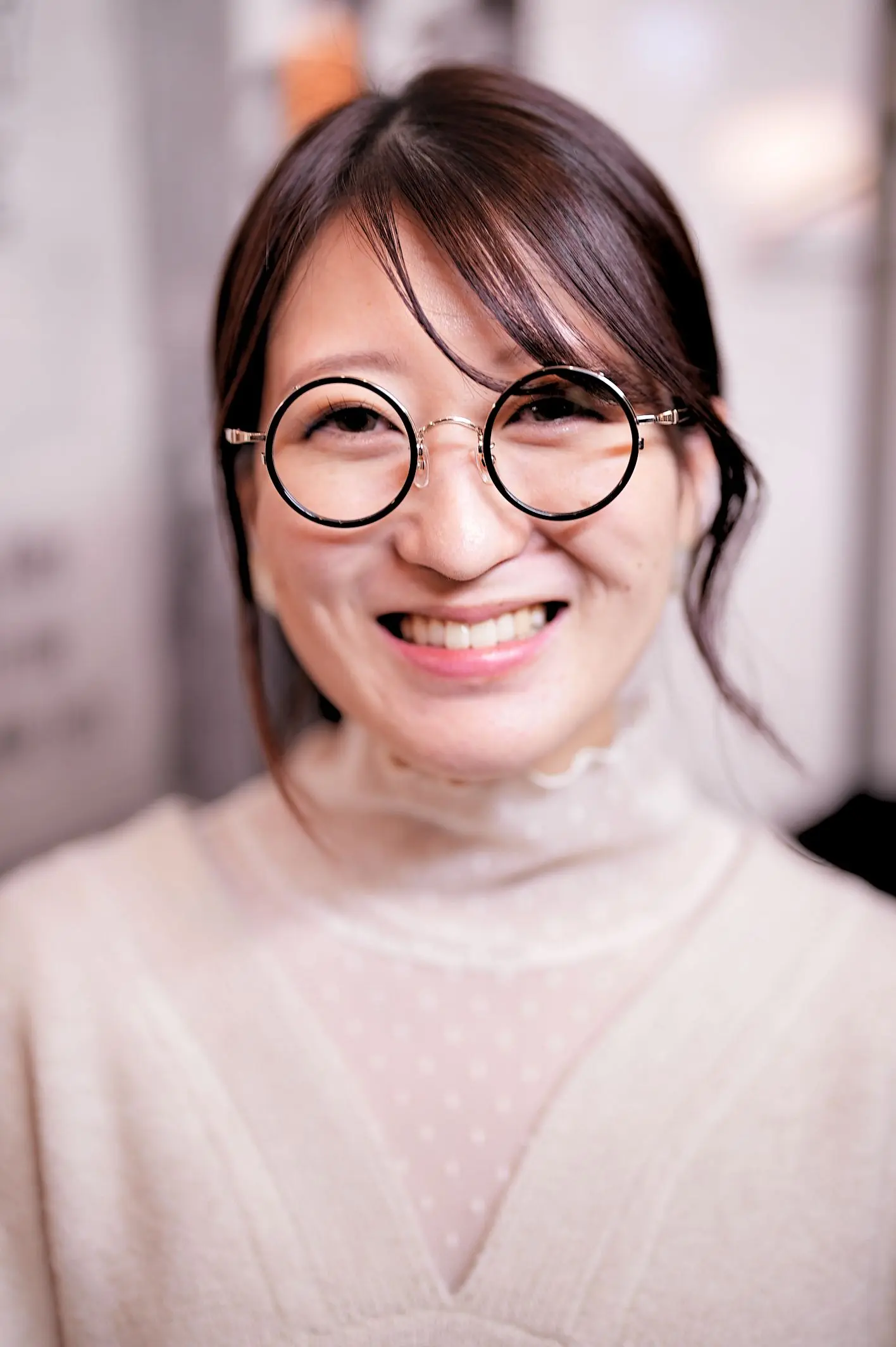 まずは、現在お使いのメガネやお度数をヒアリング。比較的強めのお度数でしたので、レンズの厚みや歪みが目立ちにくく、お顔のサイズに合う横幅の小さいフレームをいくつかご提案させていただきました。