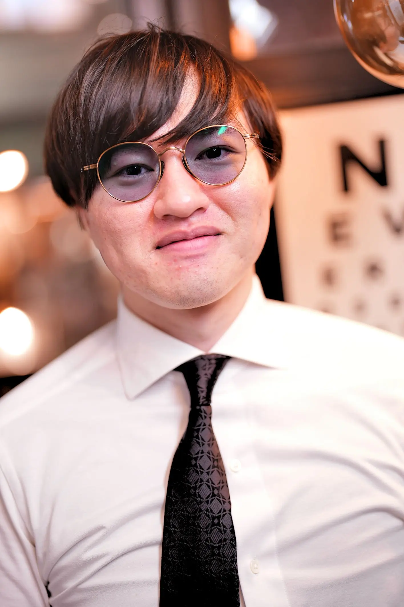行きつけの洋服屋さんの店員さんからのご紹介でご来店くださいました。当初はその店員さんが当店で購入されたLashのフレームをご希望でしたが、お話を伺う中で、EXILEのATSUSHIさんが掛けているようなデザインのフレームをご希望であることが分かりました。お持ちいただいた写真を参考に、可能な限り近いデザインのフレームとしてRG OpticsSのRG240517 Col.1をご提案させていただきましたところ、その上品かつエキゾチックなデザインと、チタンフレームの軽さや使い心地の良さにご満足いただき、このフレームをお求めくださいました。