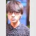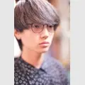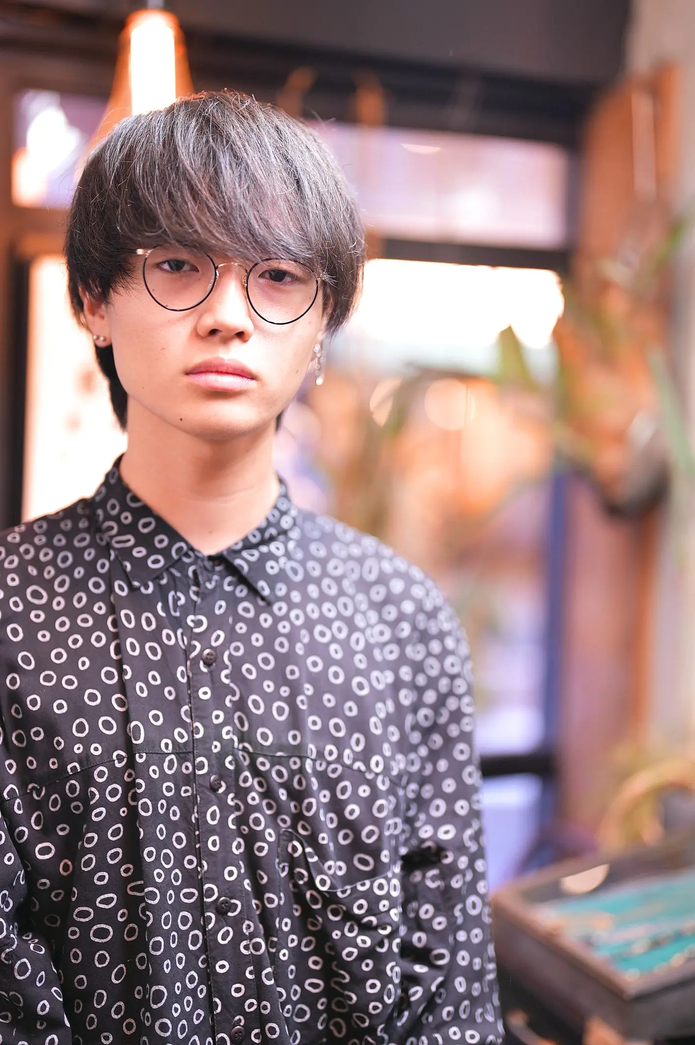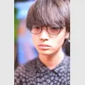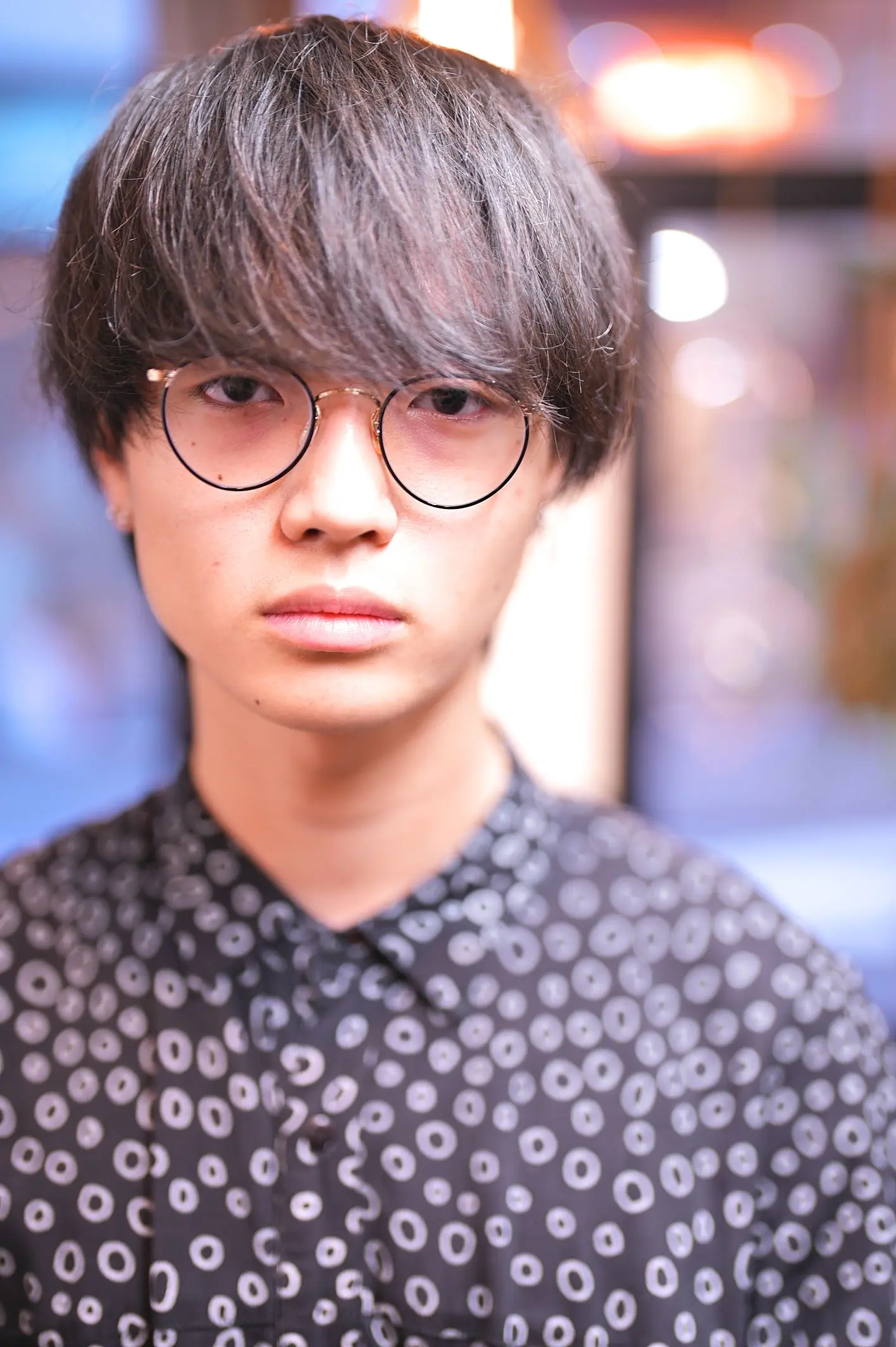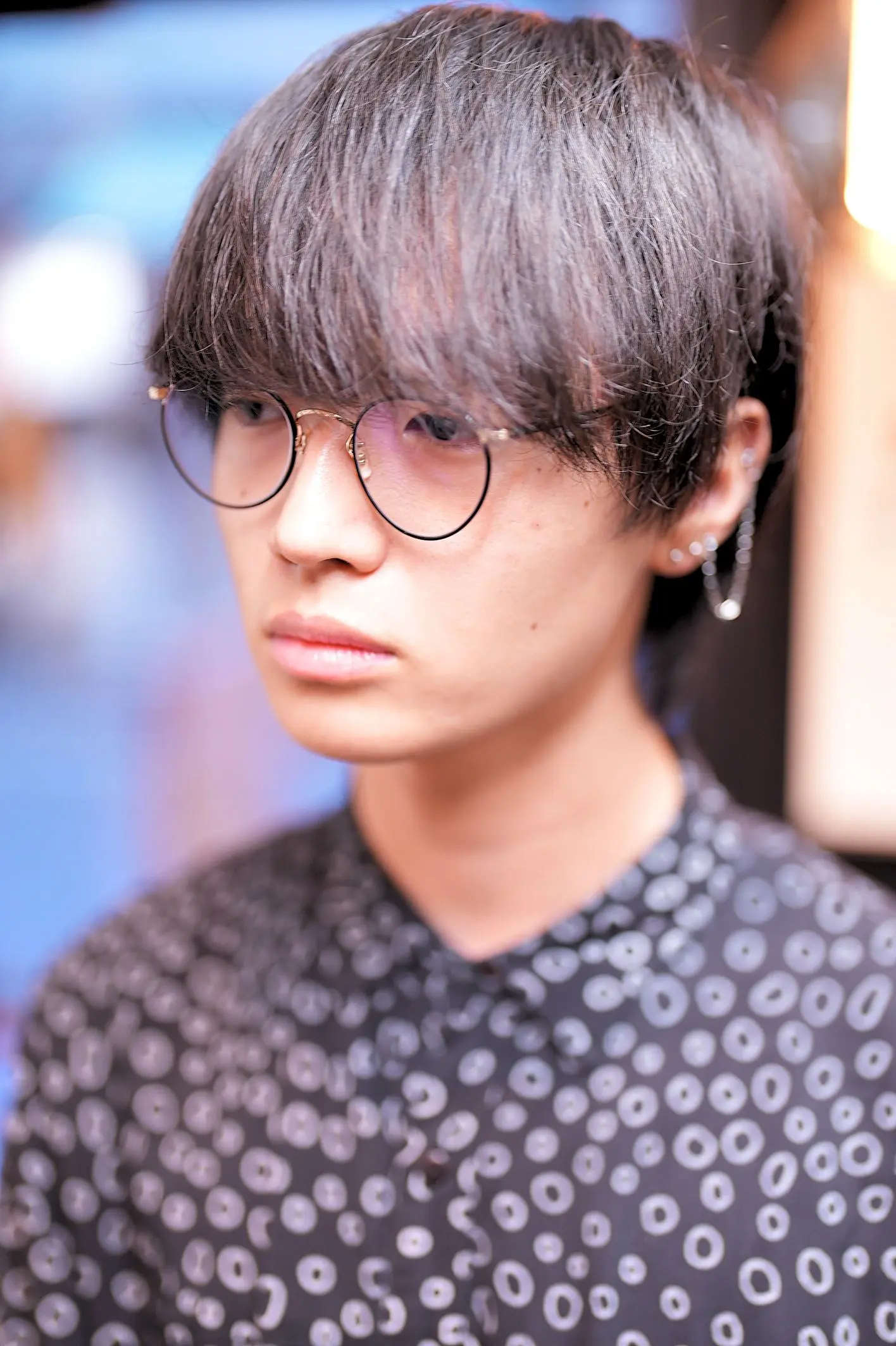 また、もう一本のお写真は、ご自身で手に取られ、お父様からも「とてもお似合い」とお墨付きをいただいた【MASAHIRO MARUYAMA - MM-0065 3】です。マサヒロマルヤマらしい「未完成のアート」をコンセプトにしたこのフレームは、ユニークな非対称のラインとフルメタルフレームが特徴的な、個性あふれるデザインとなっています。