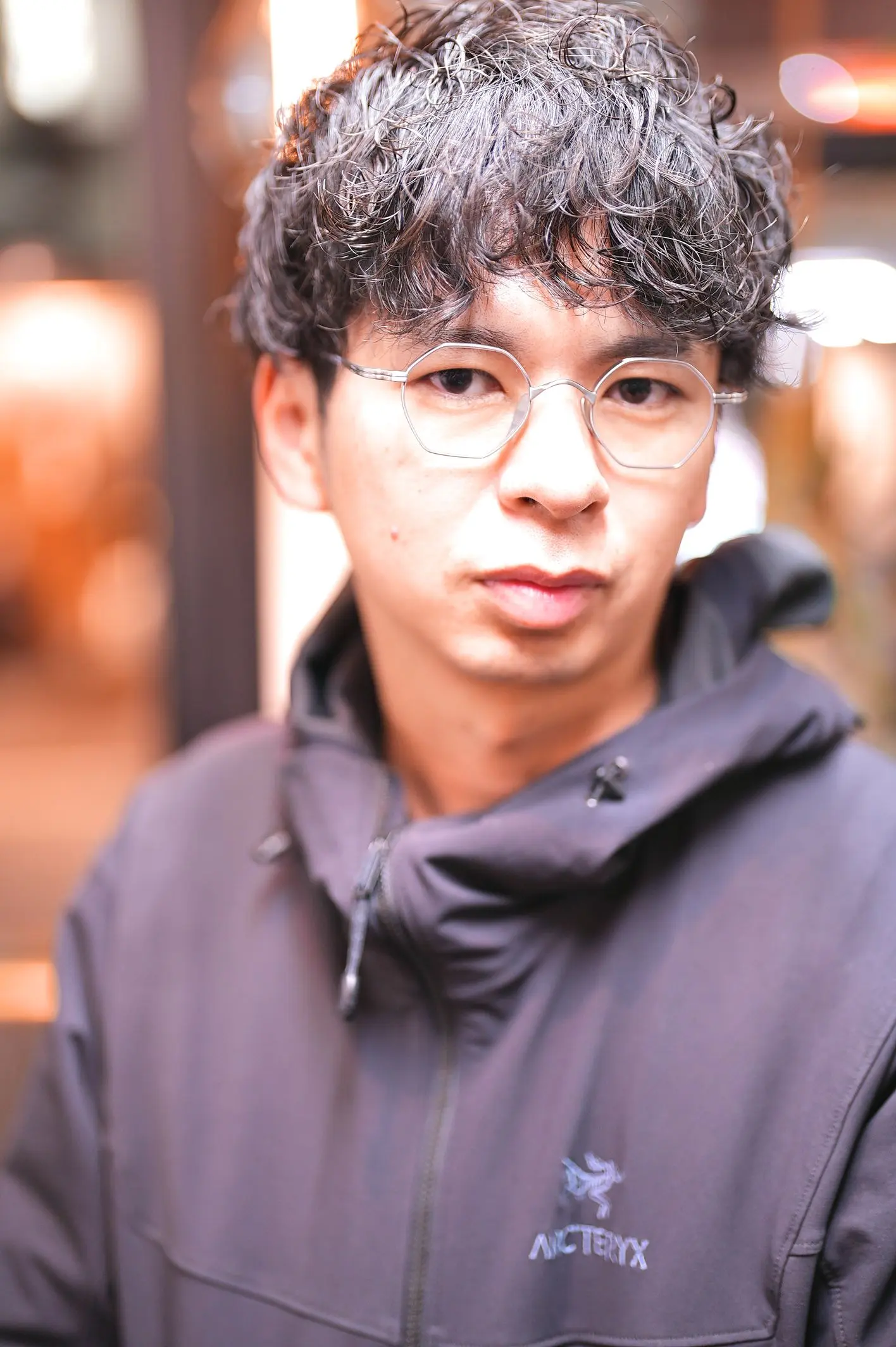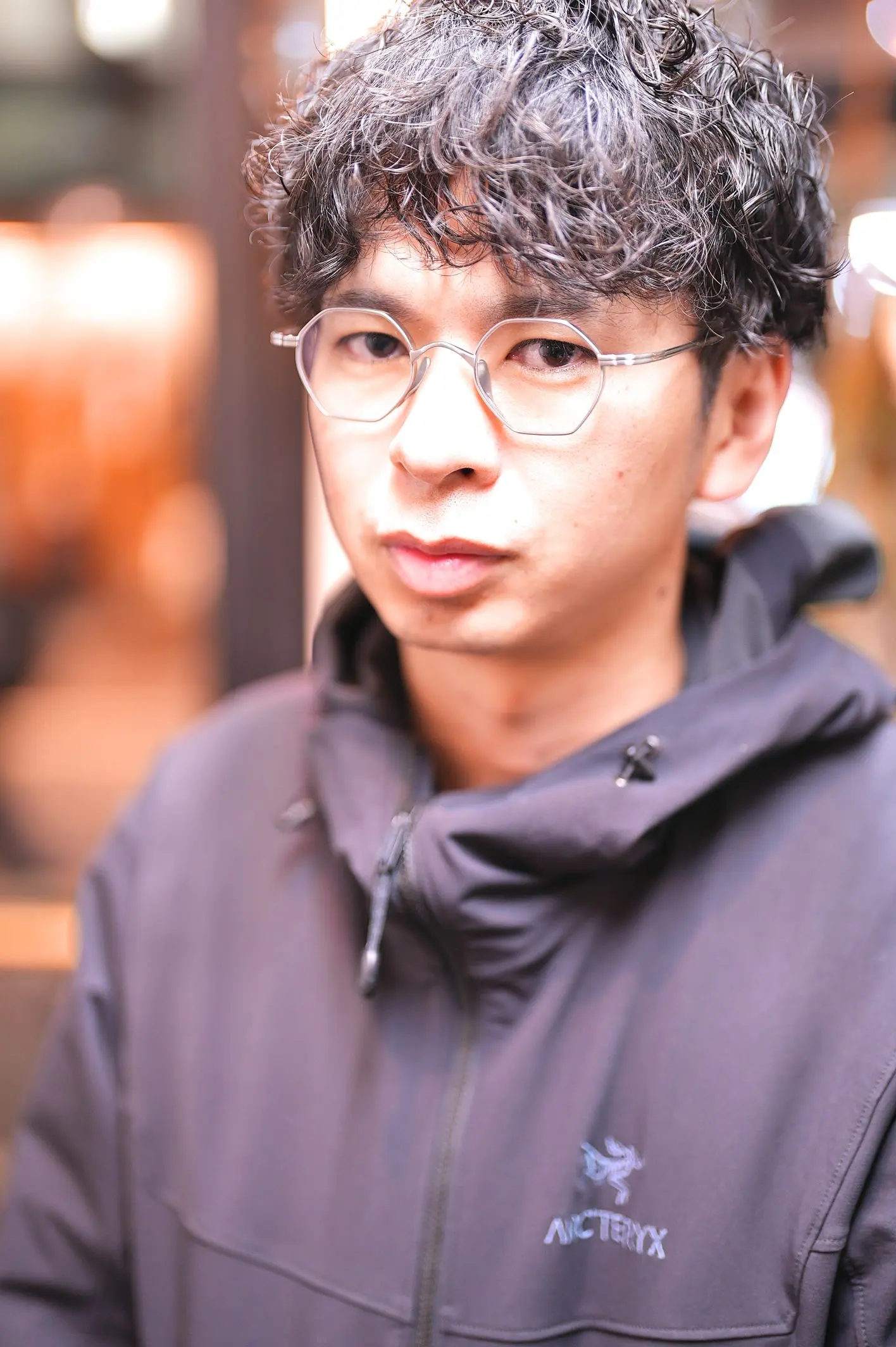 こちらをお求めいただきました、F様です。今回は現在お使いのカメマンネンのラウンドタイプとは少し印象の異なるフレームをお探しとのこと。じっくりと店内の在庫を試していただきながら、ひとつひとつの掛け心地や印象を確かめていく姿がとても印象的でした。数あるフレームの中からF様が選ばれたのは、シンガポール発のブランド、RG OpticsのRG240525 Col.2。繊細なデザインの中に、しっかりとした存在感を感じられる一本ですね。
