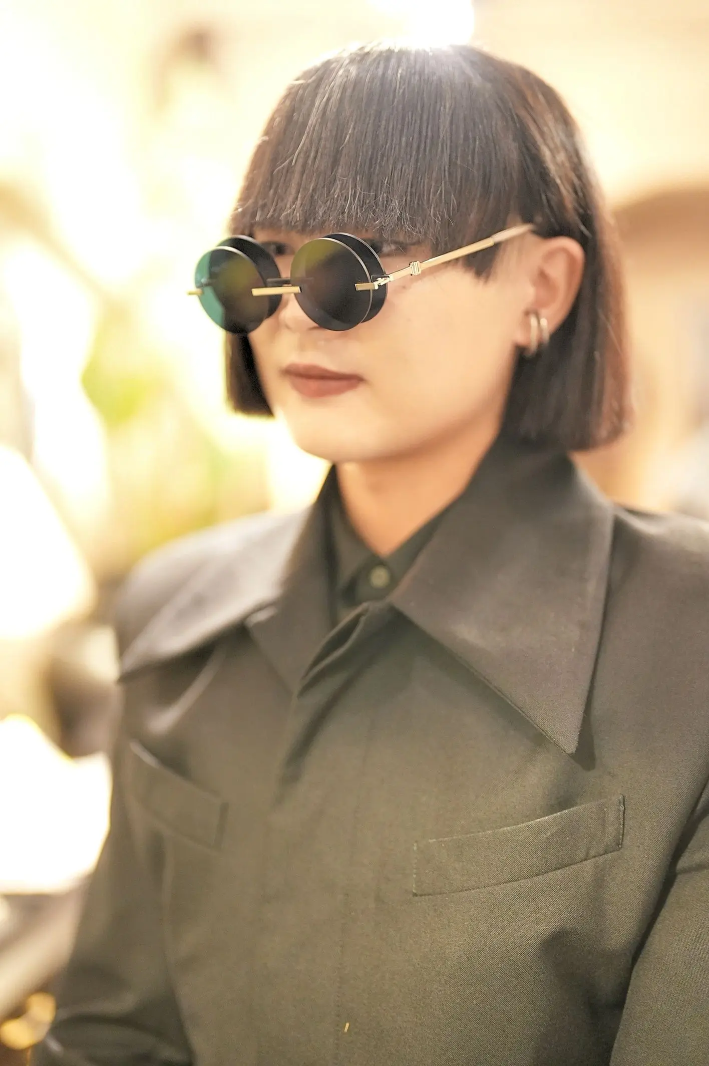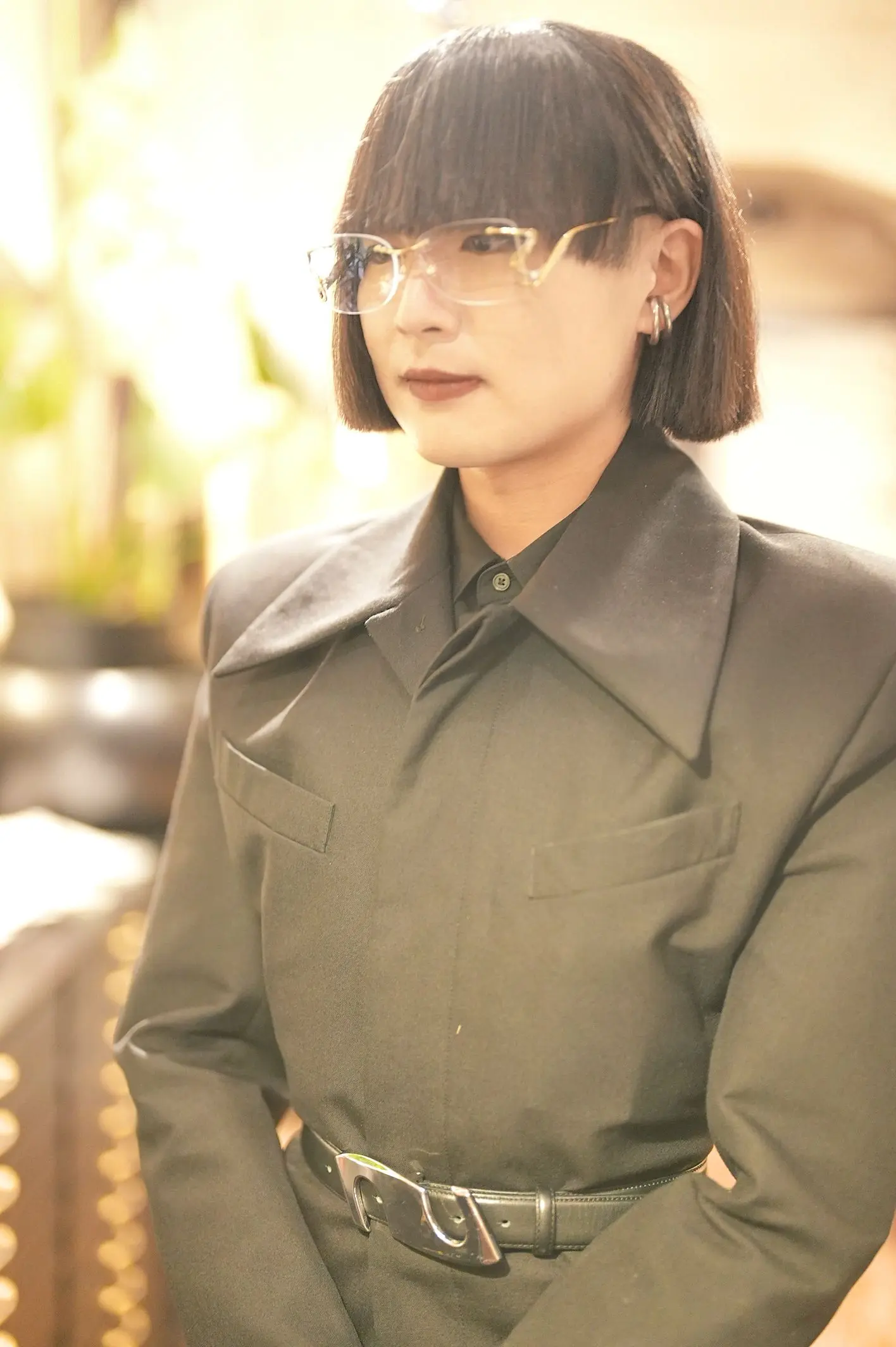 まさに、S.T様のファッションセンスを象徴するようなサングラス。レンズが二重に配置された独特のデザインで、見る角度によっては焦点が合わず、視界が揺らぐような不思議な感覚に。普通なら「掛けこなせるだろうか?」と戸惑うところですが、S.T様が掛けると、それがまるで当然のようにスタイルに溶け込むから驚きです。カザールのクラシックな魅力と、パーシーラウのアバンギャルドな世界観。その両方を迷いなく楽しめるS.T様のセンスに、心から感動しました。きっと、どんなシーンでもこの2本を自在に使いこなしていただけるのでしょうね。