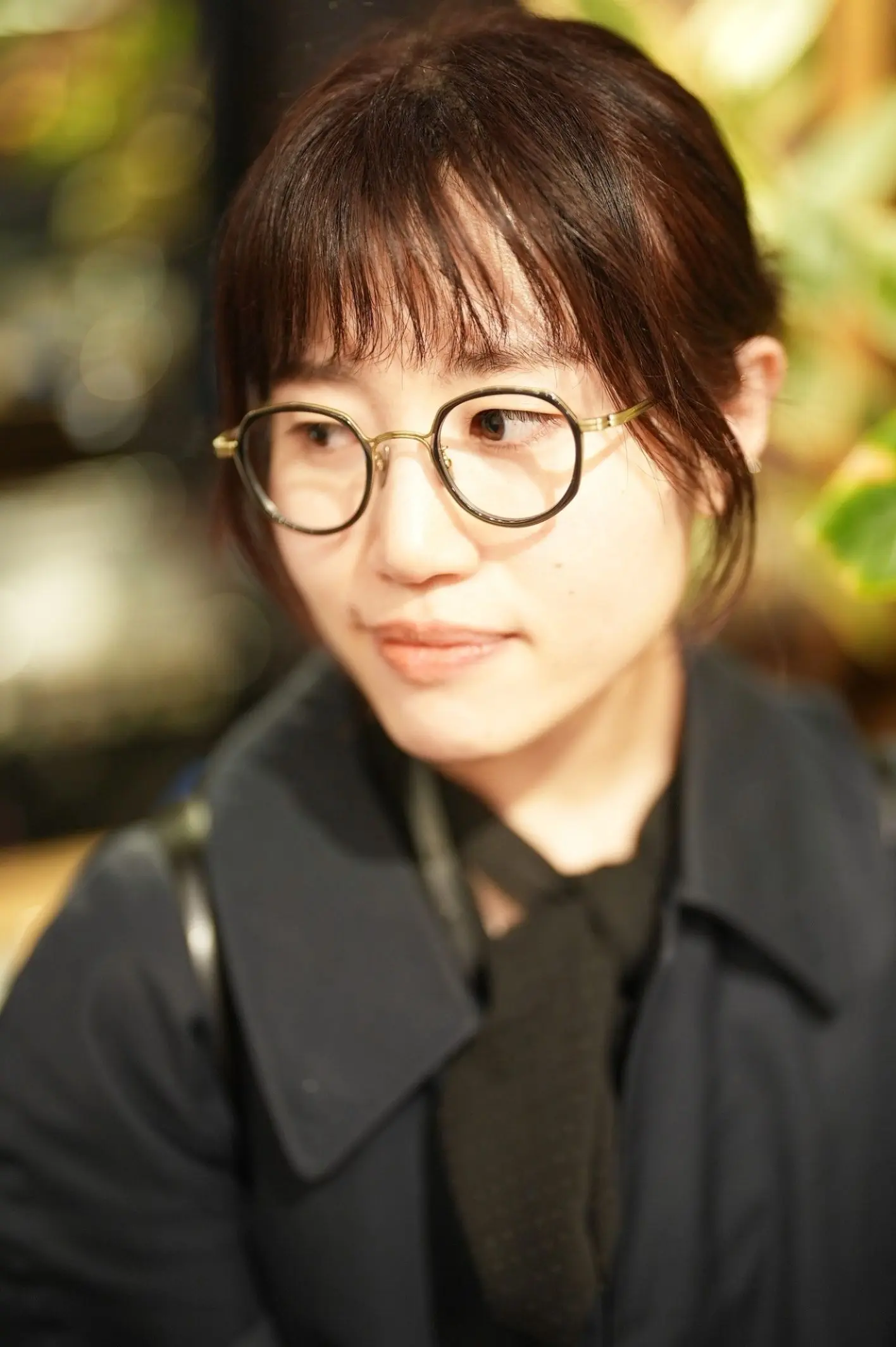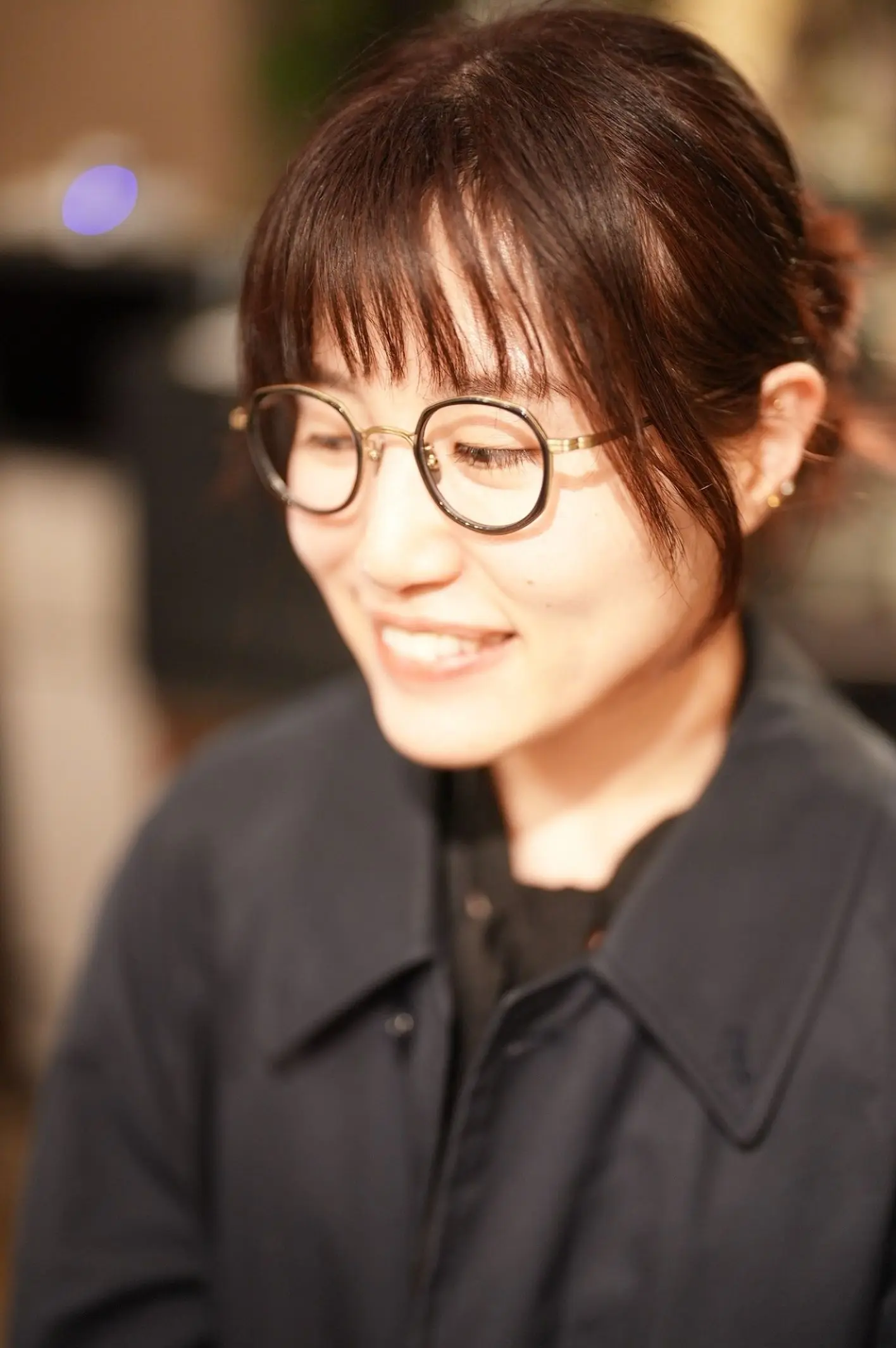 S様の知的な雰囲気と相まって、RG Opticsのシンプルで洗練されたデザインがとても映えています。自然な印象でありながらも知性を感じさせるフレーム、将来的に度数入りのレンズに交換されることになりましたら、今回のフィッティングデータをもとに、最適な視界をご提供できるよう準備を整えております。