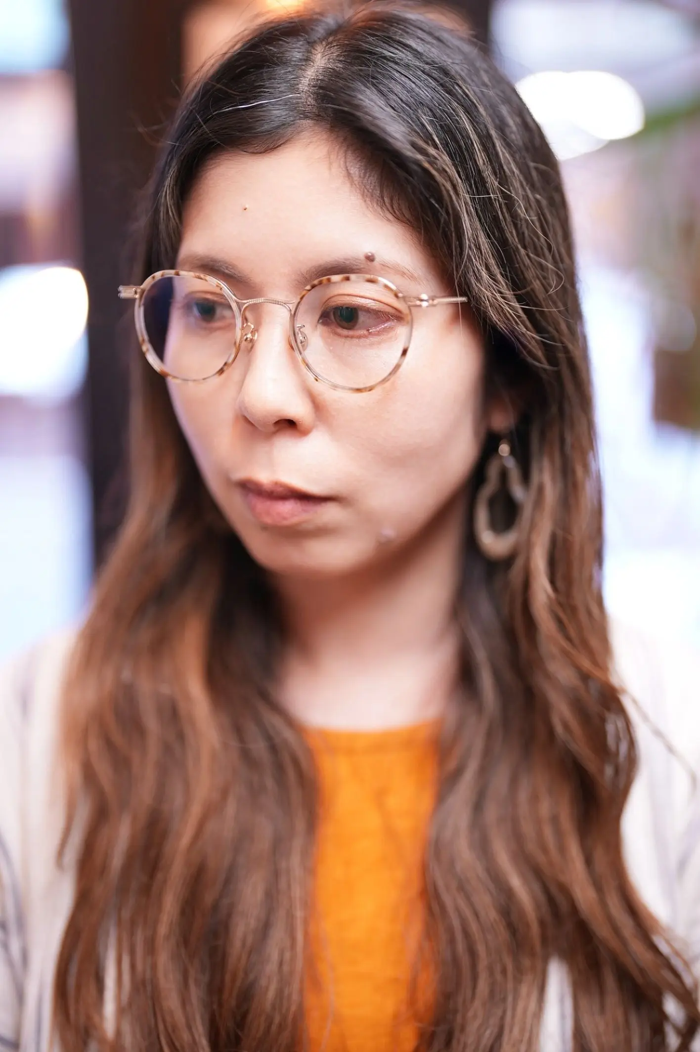 を新宿店でご購入いただきましたI様です。I様、この度はLINEより「完全におまかせ」ご予約いただき、新宿店にご来店いただきました。まずはI様の状況をお伺いすると、I様、ご愛用されていたメガネが破損してしまったこと、また、基本はコンタクトレンズをご使用とのことですが、ドライアイにもお悩みでいらっしゃるとのこと。そして今回のテーマは、「しょうがなく掛けるメガネ」ではなく、「メガネを掛けることでご自身の魅力が一層引き立ち、気分もアップするようなメガネ」を、というご要望でした。