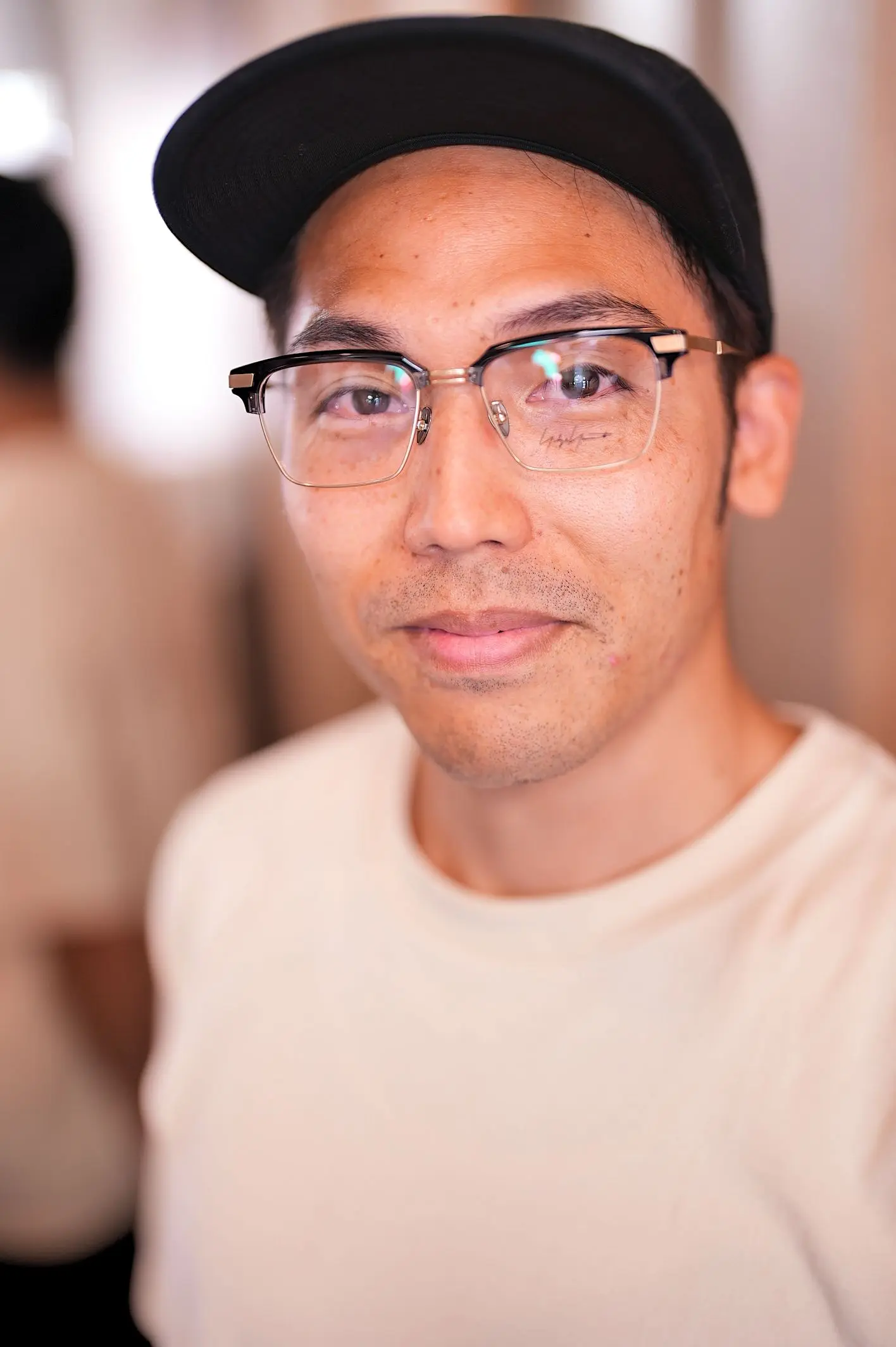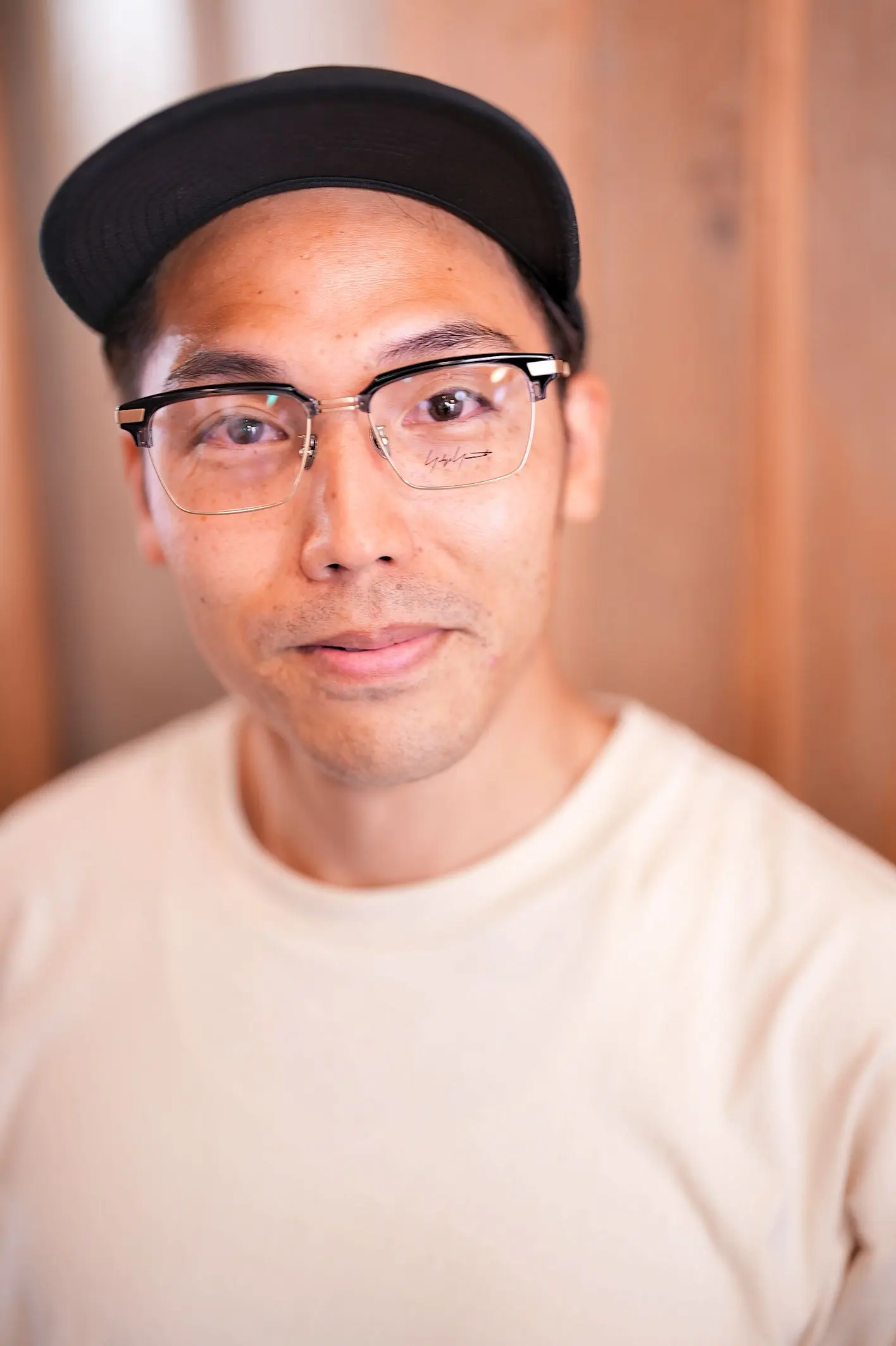 今回レンズには、現在お使いのトムフォードのグレー系とはまた一味違う、肌馴染みの良い柔らかな印象の「フェアオークル15%」にて作成。ブラウン系のフレームとの相性も抜群で、トムフォードとはまた違った魅力を引き出してくれるはず。