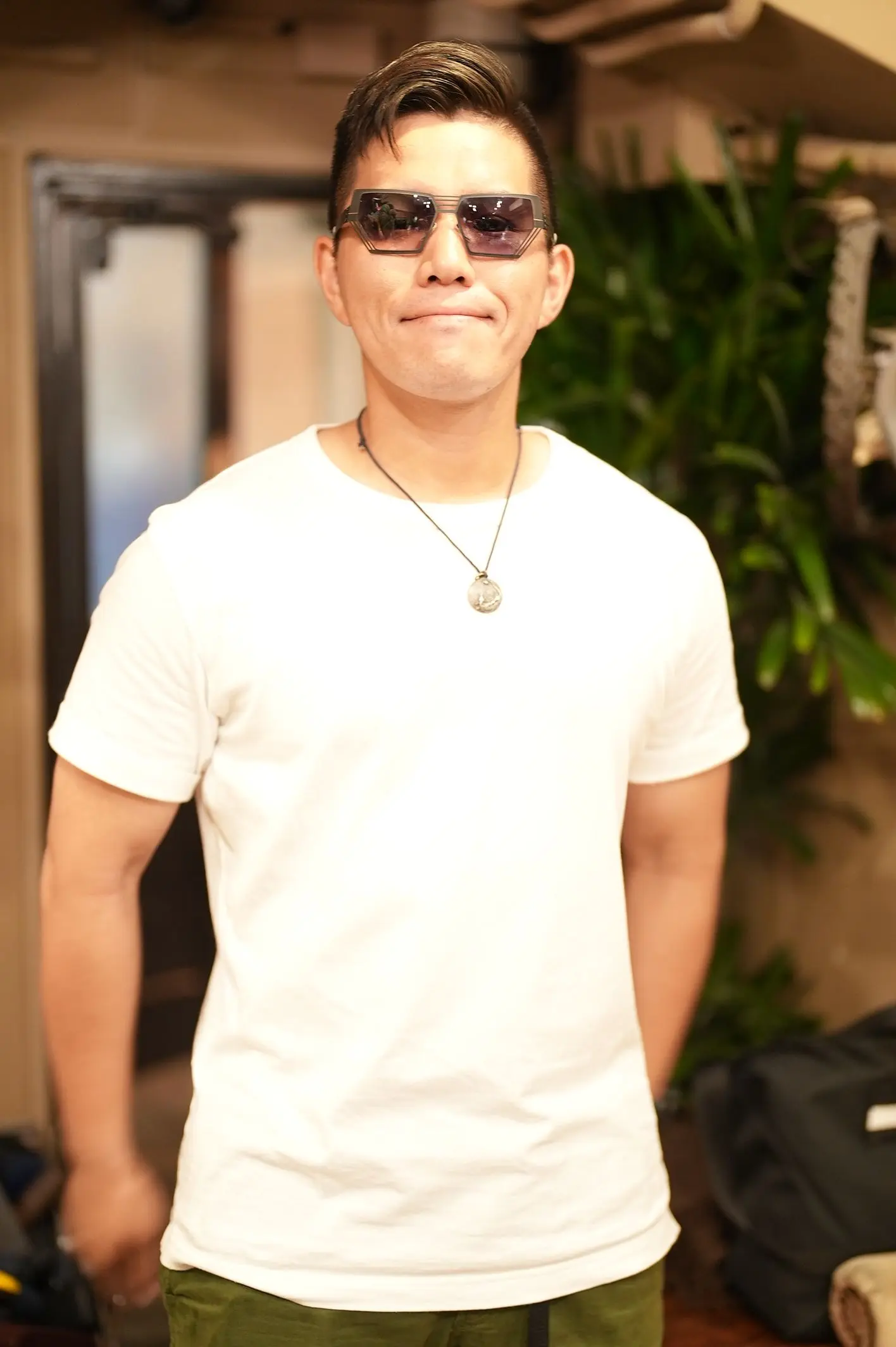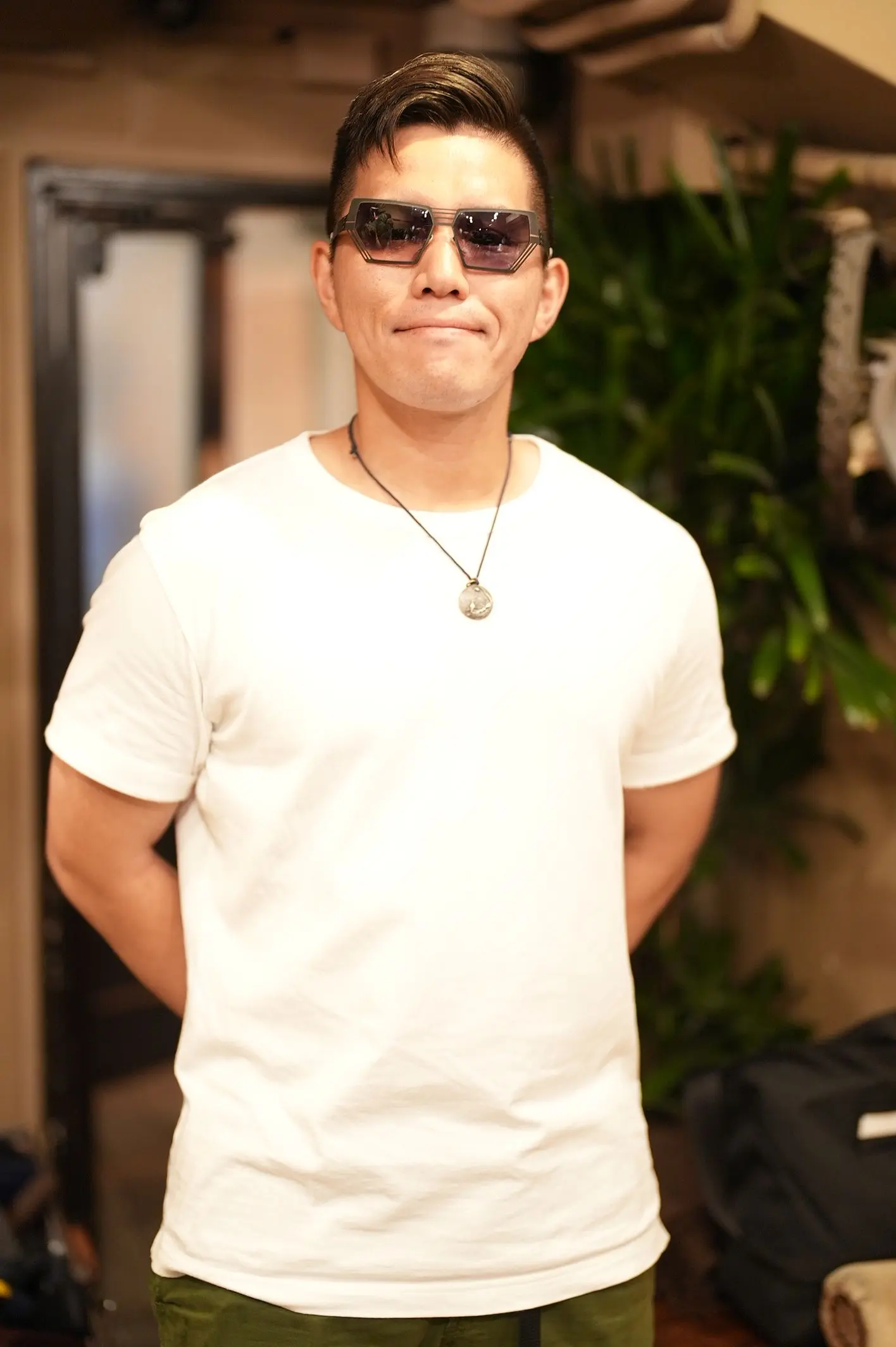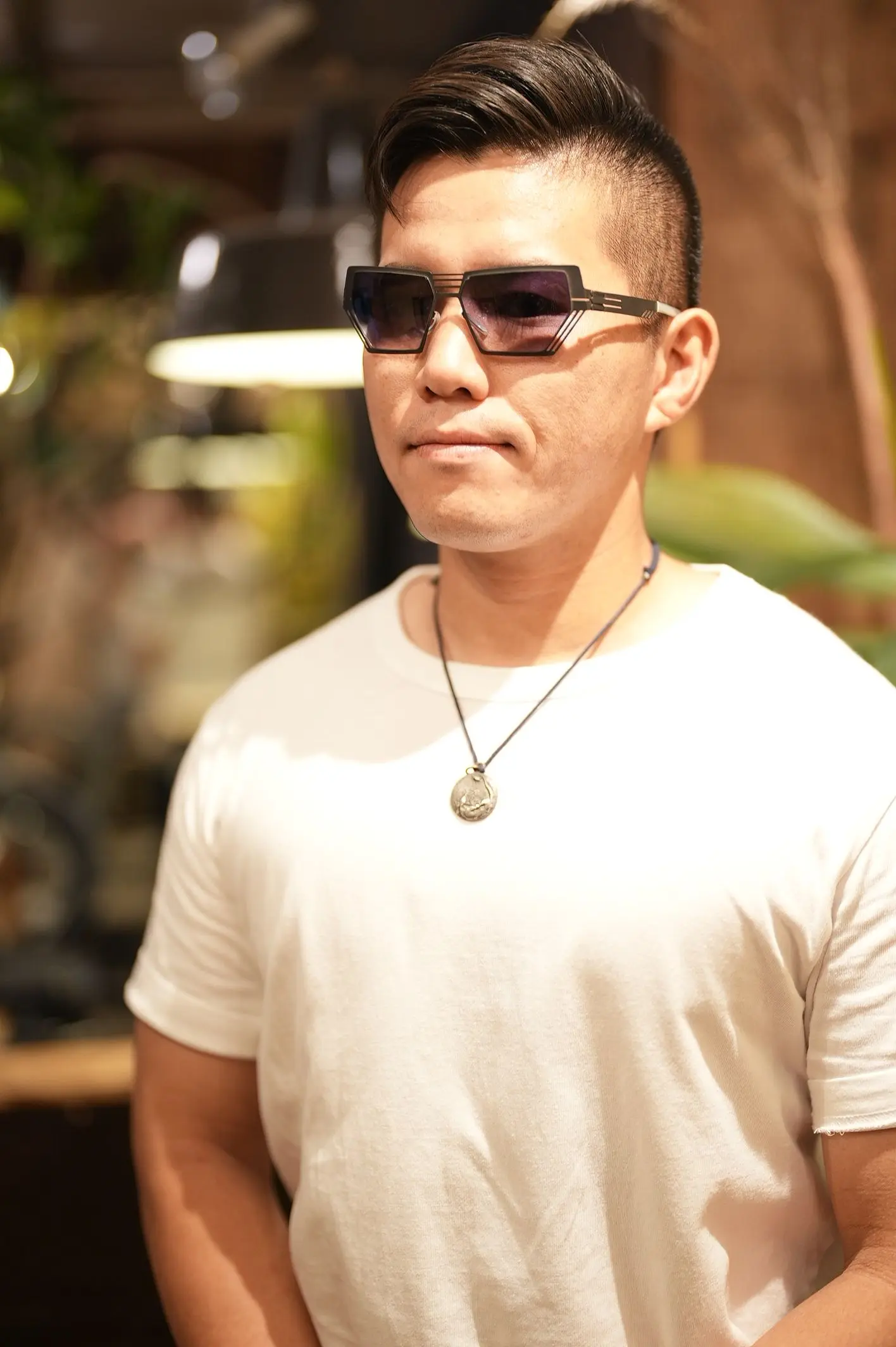 ビッグシェイプで存在感のあるデザインながら、ムタ様が掛けるとどこか抜け感があり、肩の力の抜けたラフさと品のバランスがとても素敵でした。日常使いにも、旅のお供にも、きっと気分を高めてくれる一本になると思います。