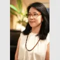 お選びいただいたのは、BEAUSOLEIL「330-117」。フランスのブランドらしい感性が息づく、スクエア型セルフレームです。やや小ぶりで顔なじみの良いシルエットが、S様の柔らかな雰囲気にとてもよくお似合いでした。淡いべっ甲柄の生地にきらりと輝くラインストーンがほどよいアクセントとなり、お顔まわりを明るく華やかに演出してくれます。