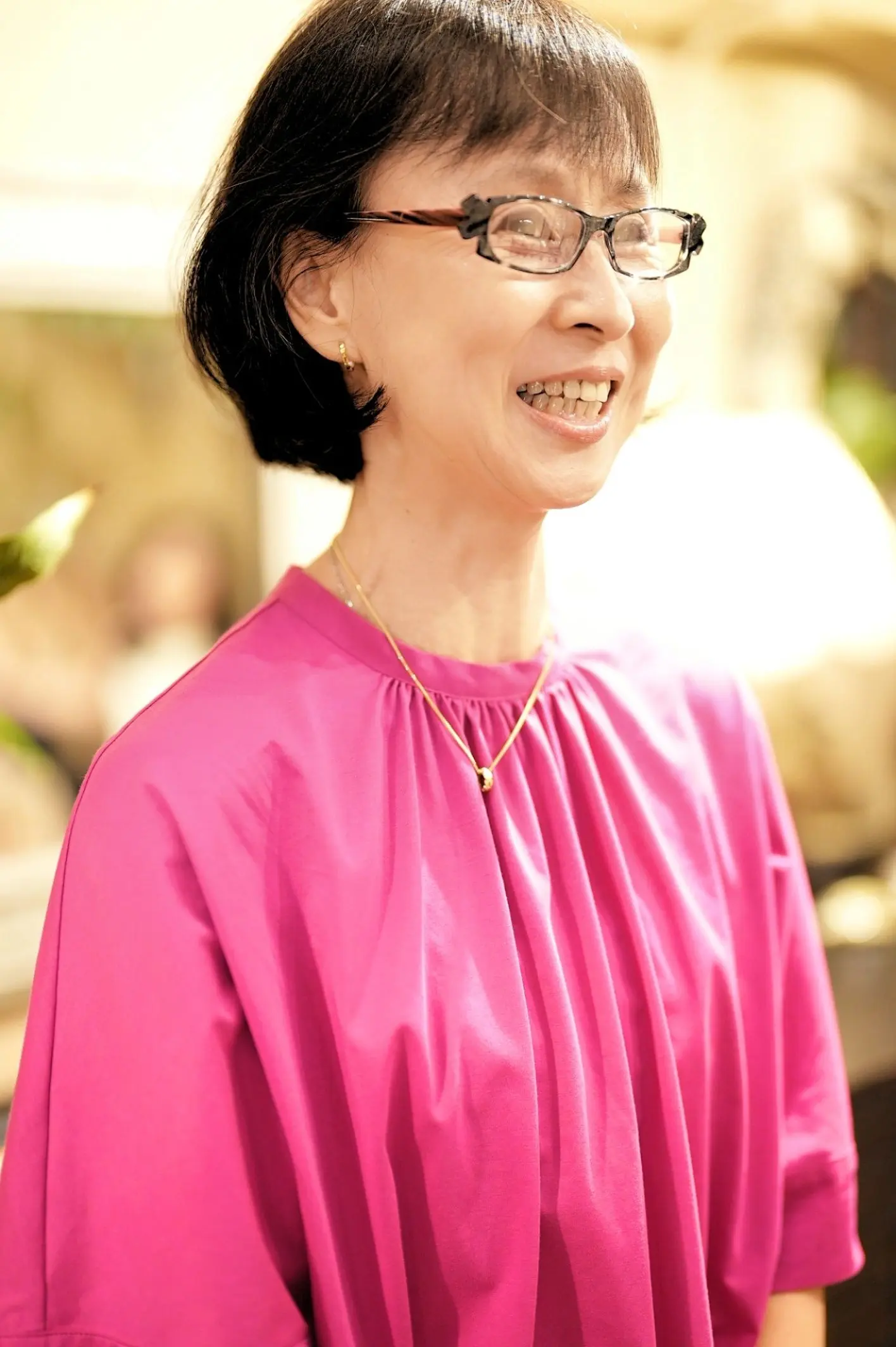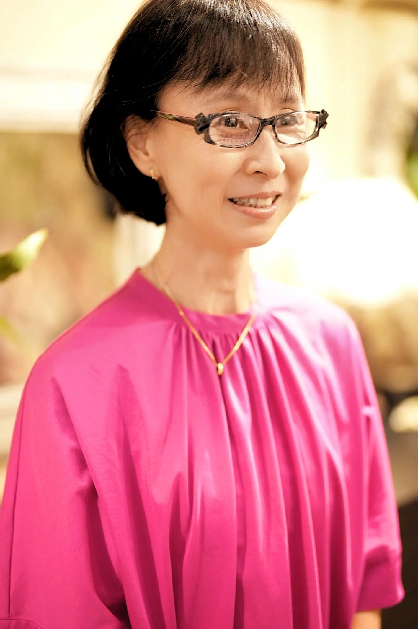 お顔立ちがすっきりと小ぶりなO様は、いつもサイズ感を大切にしておりまして、「大きすぎず、けれど存在感のある、明るい印象のデザインを」とのご希望でした。今回も、実際にさまざまなフレームをお試しいただきながら、少し小ぶりでありつつも、印象が華やぐモデルを丁寧にお選びいただきました。
