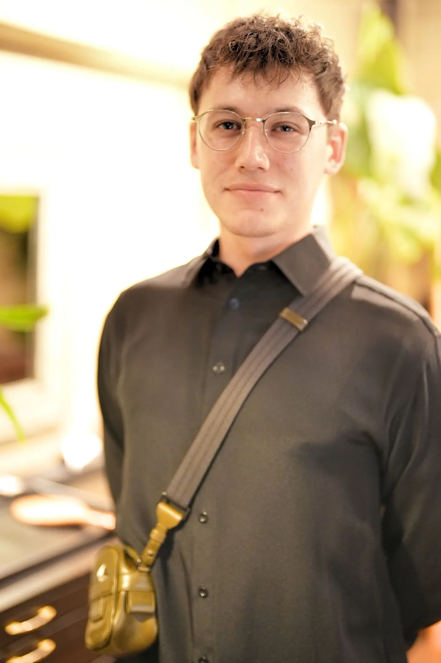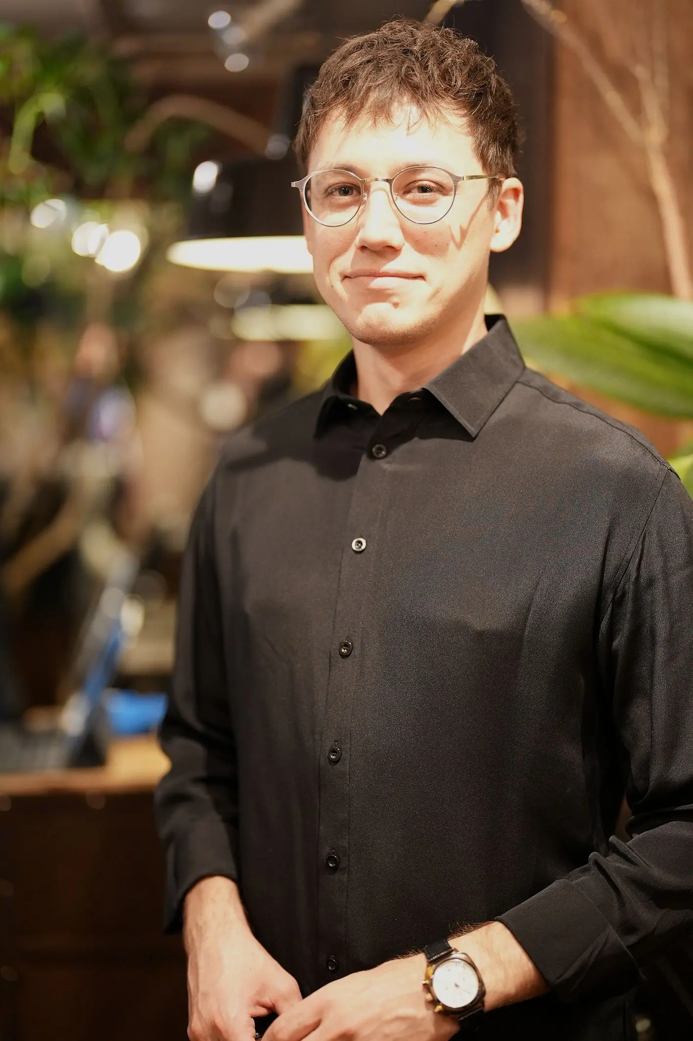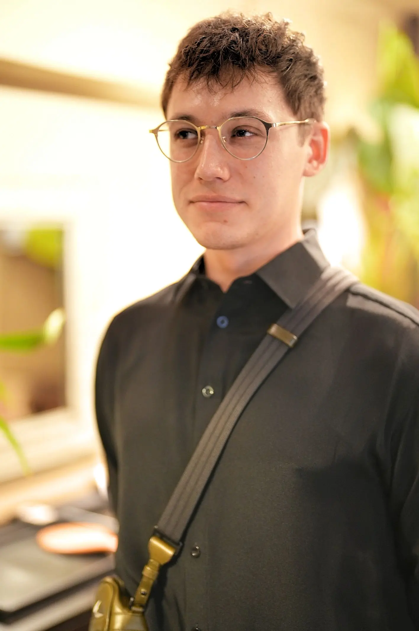 眼鏡選びに関してご自身のスタイルやお好みがしっかりされていて、今回も迷うことなく、ご自身に合う一本をすぐに選ばれたのが印象的でした。海外でお仕事をされていることもあり、サイズ感や骨格とのバランスを特に大切にされていて、実際にかけ比べながら自然に馴染むデザインを丁寧に吟味してくださいました。