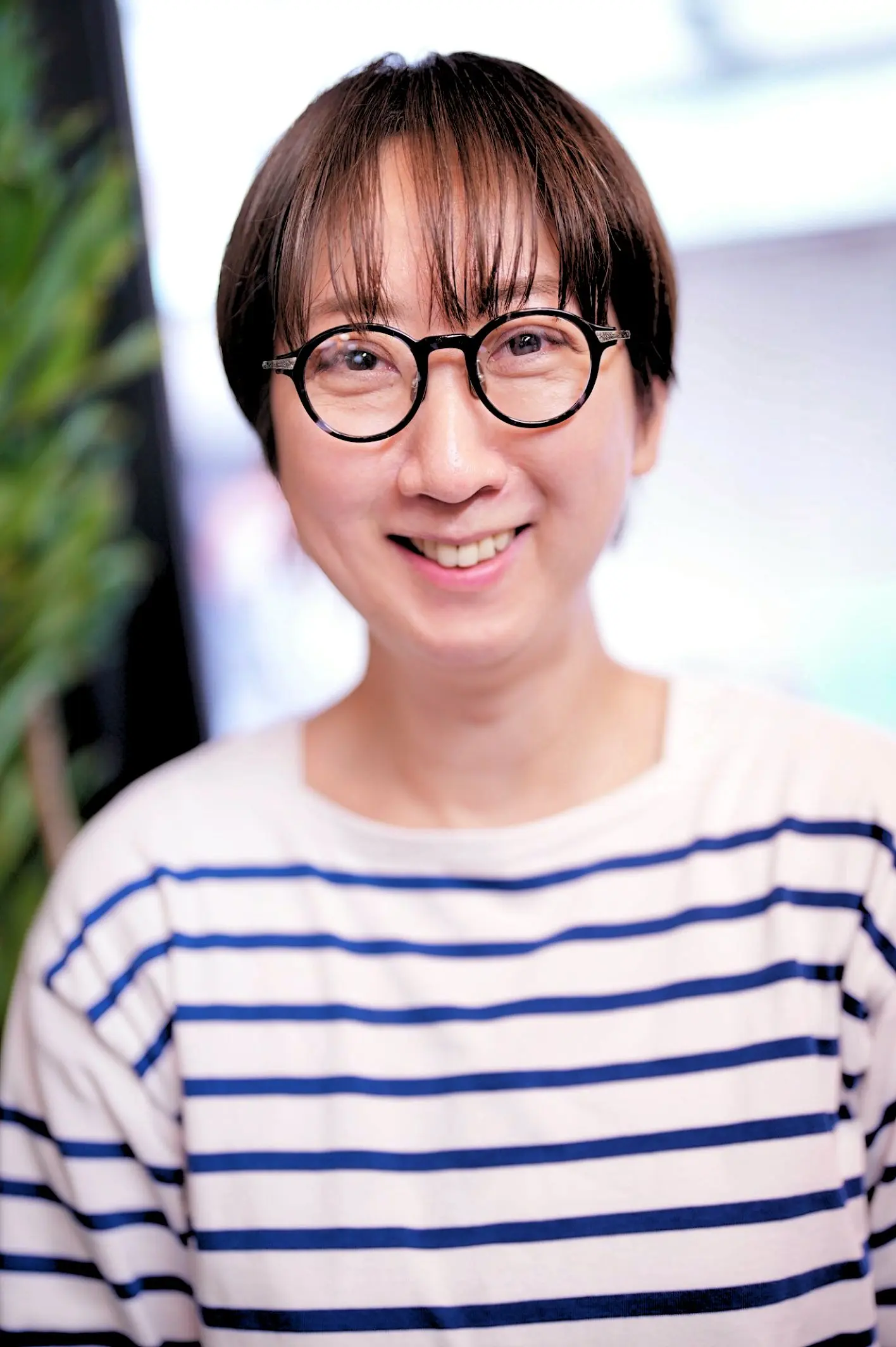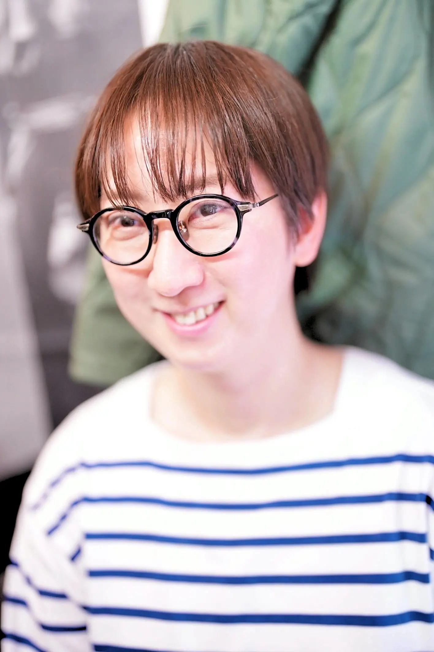 こちらをお求めいただきました、S様です。お似合いの一本をお探しにご来店くださいました。お顔立ちに自然となじむサイズ感を大切に、いくつかのフレームをじっくりとお試しいただく中で、ふと手に取られたのが「内藤熊八 N-403 C-3」。そのブルーの色合いに特に惹かれたご様子でございました。