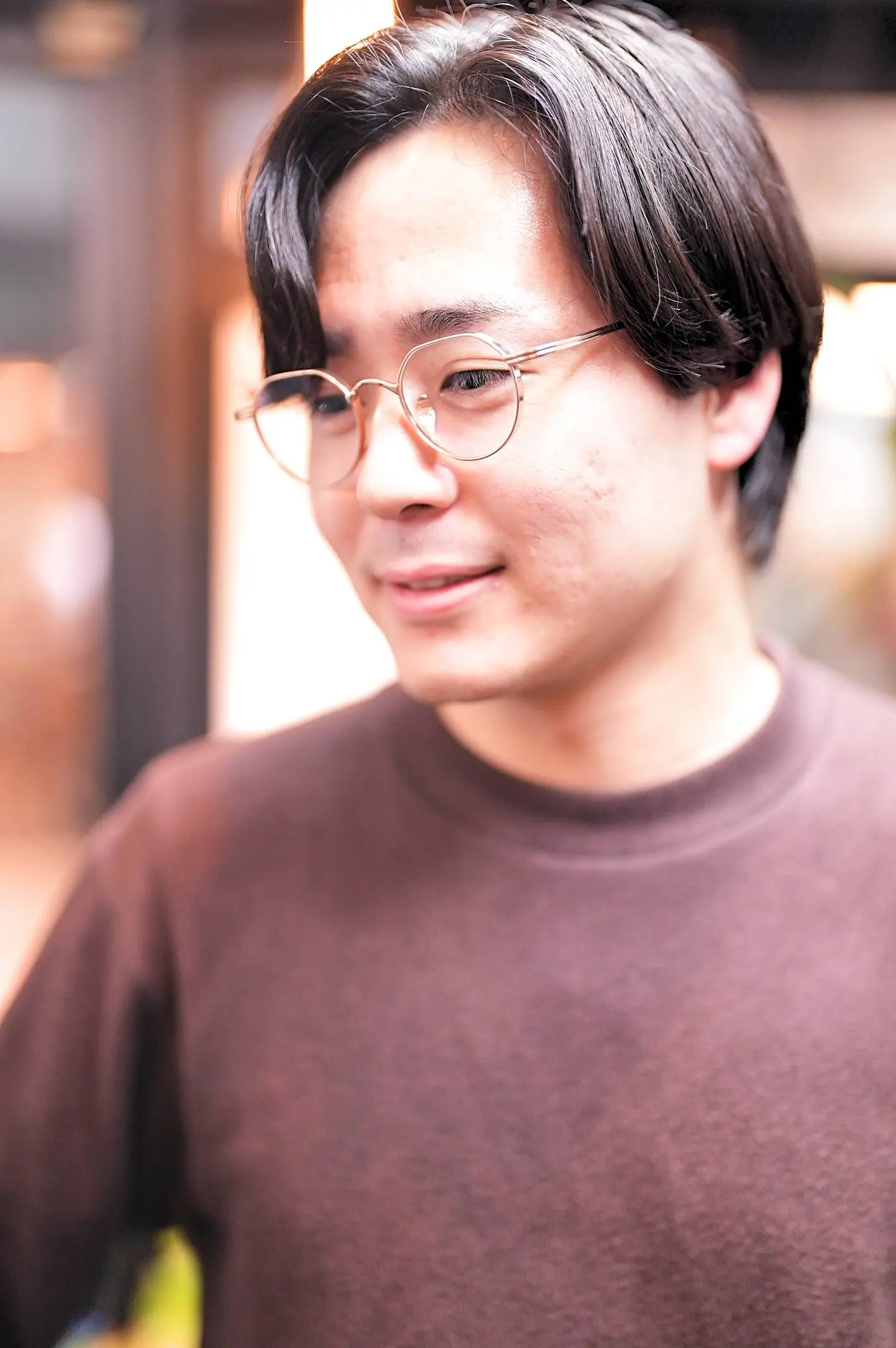 数ある新宿店のフレームの中から、お二人でじっくりと選ばれ、最終的にW様が一番気に入ってくださったのがこちらの【RG Optics】でした。この「col.2」のカラーは、肌馴染みの良いナチュラルなピンクゴールド。派手すぎず、でもお顔周りにほんのりと華やかさと気品を添えてくれる絶妙な色合いで、W様の柔らかな雰囲気に驚くほどぴったりとお似合い!シンガポール発のブランド【RG Optics】は、上質なチタン素材を用いたシンプルで無駄のない作りが特徴です。装飾を削ぎ落としたミニマルなデザインだからこそ、素材の良さが際立ちますし、何より非常に丈夫。劣化も少なく、日常のどのようなシーンでも「がしがし」と気兼ねなく使っていただける実力派です。