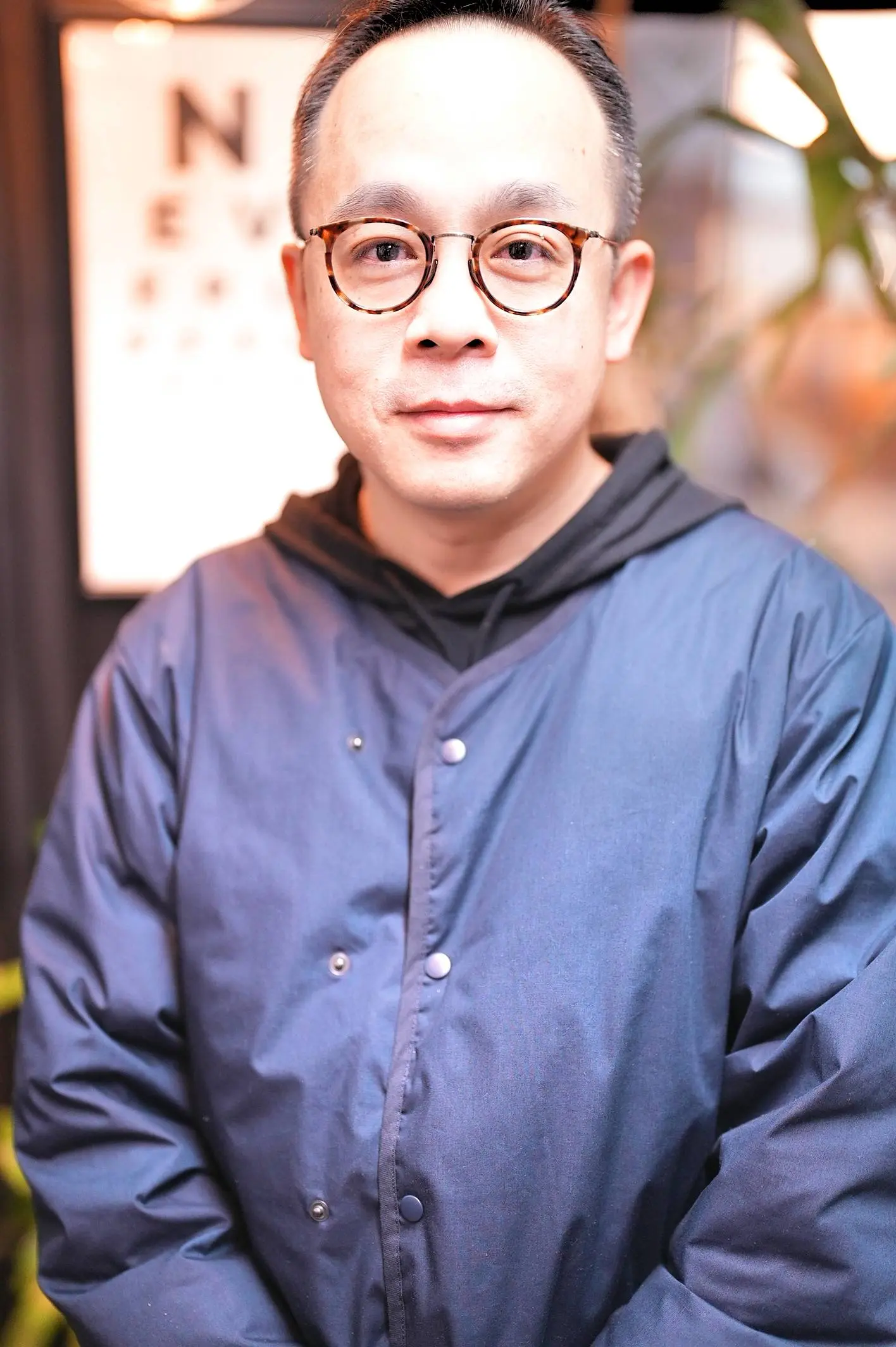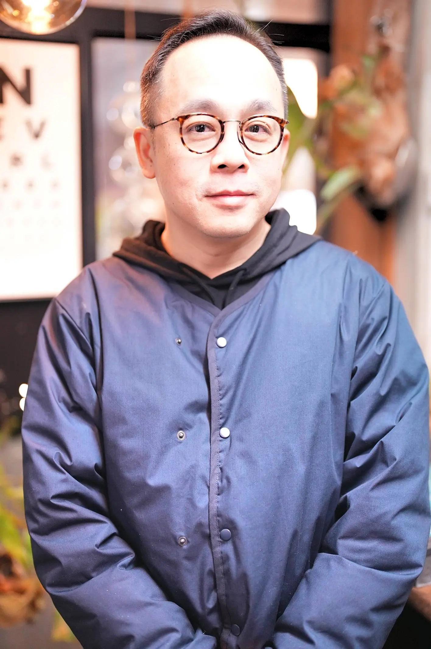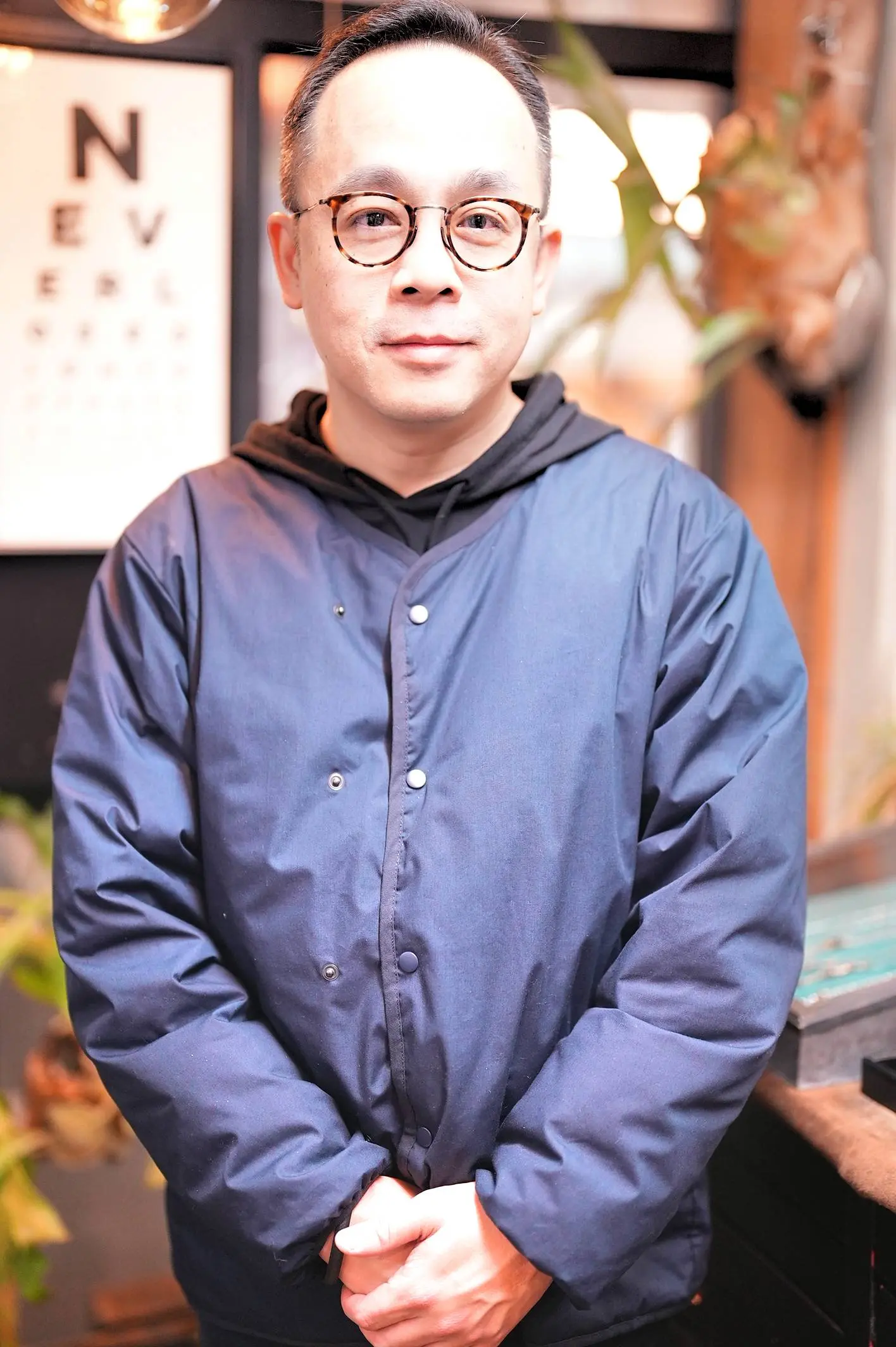 Chester has a strong appreciation for Japanese-made, classical round eyeglasses, and before visiting the store, he had carefully looked through our website and already had a clear image of the style he was looking for. After trying on several frames, the one he ultimately chose was Kame ManNen’s KMN-1110 HAV/AG TITANIUM.