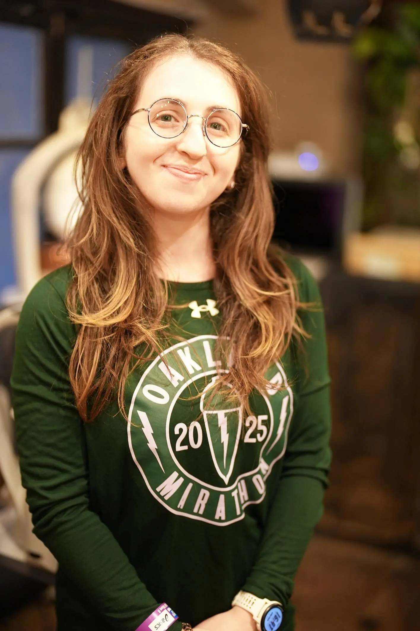 YA-020は、一見すると丸眼鏡の形をしているように見えますが、よく見るとあるはずの場所にリムがないという、少し変わったデザインになっています。本来あるべきものがないという発想が、そこに視線を集め、普通の丸眼鏡に程よい個性と他では味わえない楽しみをもたらしてくれる一本です。Made in 鯖江の確かな技術が支える立体的な構造と、繊細なチタンの質感が、Ariana様の華奢なお顔立ちに自然と馴染み、品のある個性を引き立ててくれました。サイズ感も完璧で、Ariana様にもとても気に入っていただけたご様子でした。