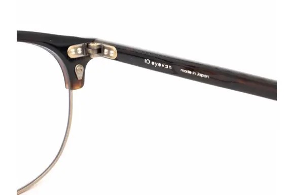 1972年「着るメガネ」をコンセプトにスタートしたドメスティックブランドEYEVAN。当時の職人たちの最高の技術を駆使し作られたCRAFTシリーズよりデザインや製造方法、パーツの解体・再構築によって、2013年スタートしたEYEVAN7285のデザインチームによって、2017年新たに立ち上げられたレーベル 10 eyevan のno.1 Ⅳ(47)です。10 eyevanは「美しい道具」をコンセプトに、美しい道具は美しいパーツの集合体であるという考えの基、10種の特別なパーツで構成された眼鏡を作り上げています。デッドストックのセルロイドとチタンで表現した、フォース(4th/Ⅳ)モデルです。鼻パッドには、天然の貝殻、正面、サイドの鋲とテンプルエンドには、シルバー925が採用されています。細く、シンプルでクラシカルかつ上品に仕上げられた、サーモントスタイルのコンビネーションフレームです。