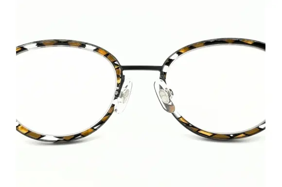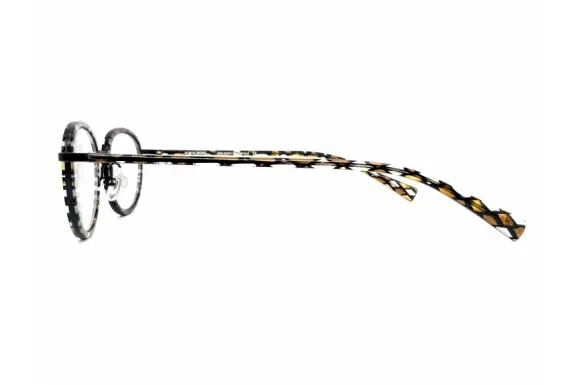 審美性と機能性、デザインと技術を調和させた「見るための、見られるためのメガネ」、アランミクリ、AO1075です。マツケリ―社にオーダーしている生地の美しさは言わずもがな。美しいボストンタイプで、フロントはセル枠を内側にはめ込んだクラシカルなスタイル。サイドは細身のプラスチックテンプルを合わせています。アランミクリらしいブラウン/クリアのダイヤ柄の生地がとても素敵な一本です。