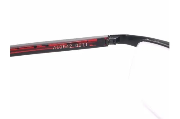 審美性と機能性、デザインと技術を調和させた「見るための、見られるためのメガネ」、アランミクリ。マツケリ―社にオーダーしている生地の美しさは言わずもがな。モデル、AL0542です。メタルブローのトップラインは上を黒、下を赤で塗装し、一部を少し捻り上げ、赤が正面を向くことで生まれる曲線美がたまらなくスタイリッシュ。サイドにはブラック/クリアレッドのアセテートテンプルを合わせたコンビネーションフレームです。抜群にCOOLな限定アイテムです。