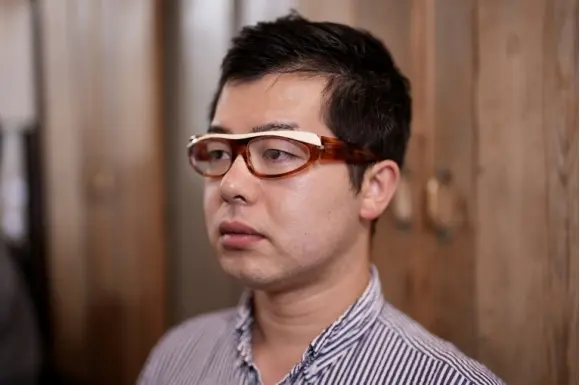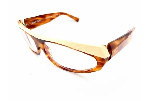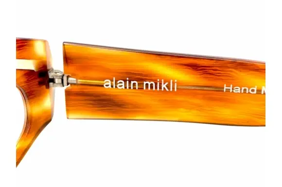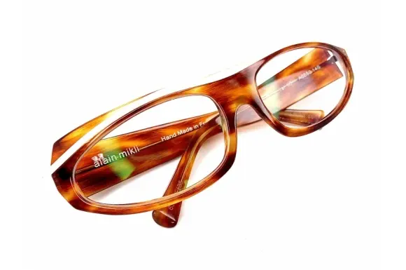 審美性と機能性、デザインと技術を調和させた「見るための、見られるためのメガネ」、アランミクリのA0850です。マツケリ―社にオーダーしている生地の美しさは言わずもがな。やや変則的でユニークな玉型、カッティングデザインが特徴的。フロントトップの白いラインが、アシンメトリーデザインとなっている、Twist(ツイスト)シリーズのセルフレームです。バネ蝶番を搭載しています。