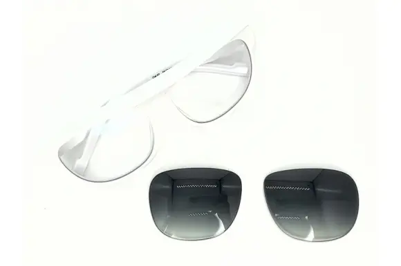 カラーレンズが付属いたします。そのレンズでサングラスとしての使用がご希望でしたら、当店にて入れ替えてお渡し出来ますので、お申し付けください。