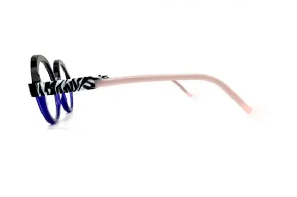 掛ける人の個性、魅力を引き出す、センス抜群なフレンチブランド、アンバレンタインのLUDIKです。大胆なデザイン、色使いがアンならではで、かなり個性的なラウンド型のセルフレーム。ファッショナブルな一本です。カラーレンズを入れてもハマると思います。