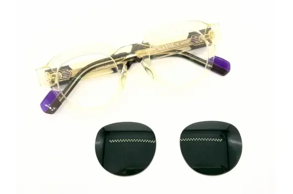 カラーレンズが付属いたします。そのレンズでの使用をご希望でしたら、当店にて入れ替えいたしますので、お申し付けください。