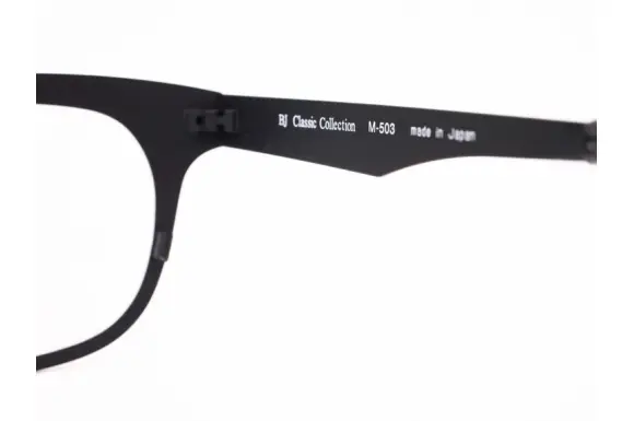 BJクラシックのシートメタルメタルフレームM-503です。軽く丈夫、耐食性が強く金属アレルギーも起こりにくい素材であるPURE TITANIUM(ピュアチタン)を採用したモデルです。クリップオンサングラス付きです。