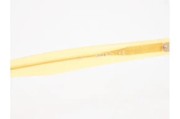 BJ ClassicのP-508です。細身ですっきりとしたスクエア型のセルフレームです。フロント、サイドの飾り鋲が効いたBJクラシックらしいクラシカルな一本。マットイエロー生地の独特な質感、発色が美しいフレームです。