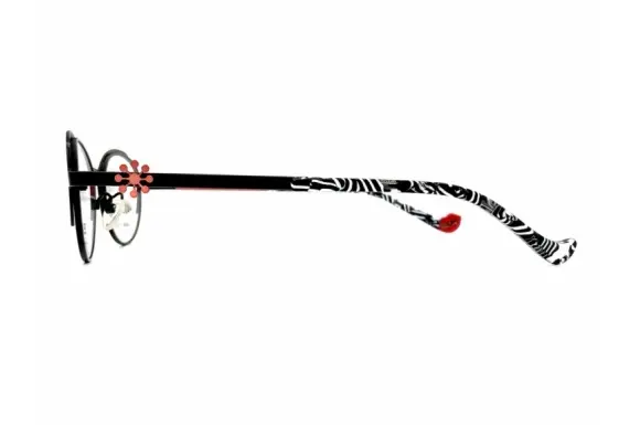 花や雲など自然をモチーフにし、エキゾチックでフェミニン、デコラディブなデザインは、まさにアートなBOZのメタルコレクションより、MAGICです。シックな黒いフレームに赤いフラワーパーツが際立つデザイン。コンパクトなオーバルフォックスで、小顔の方にもしっくりくると思います。遊び心を感じる右モダンの唇など、BOZならではの女性らしく、POP&CUTEな一本です。