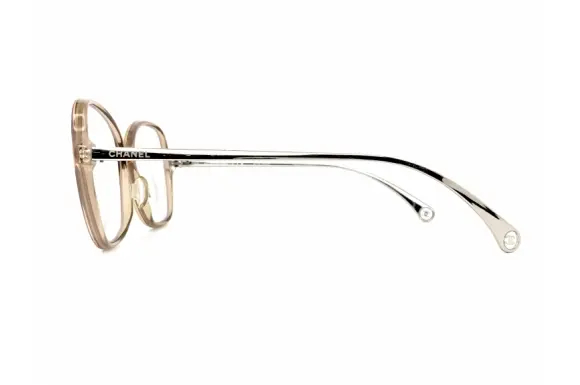 ココ・シャネルが興したファッションブランドで、レディース商品を中心に服飾・化粧品・香水・宝飾品・時計などの分野で世界中のセレブリティーに愛されるあまりにも有名なパリのブランド、シャネル(Chanel)のアイウェア、3399です。フロントサイドに埋め込まれた、ダブルCマーク、テンプルのロゴ、エンドにもダブルCマークがあしらわれ、さりげなくも主張する、セクシー&ラグジュアリーなコンビネーションフレームです。