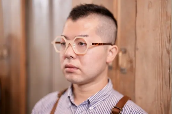 台湾発、CLASSICOのC21です。クラシカルでオーセンティックなセルフレームを、大胆な多角形デザイン、ユニークな生地づかいで仕上げています。CLASSICOらしい遊び心が加えられた一本。カラーレンズを入れてもハマりそうです。