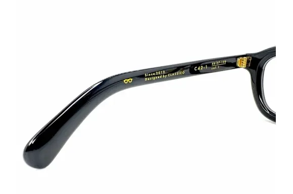 台湾発、CLASSICOのC42-1です。クラシカルでオーセンティックなウェリントン型のセルフレームを、ぽってりボリューミーにデザイン。テレビジョンカットや生地づかいも、独特な雰囲気を生んでいます。CLASSICOらしい遊び心が加えられた一本。カラーレンズを入れてもハマりそうです。