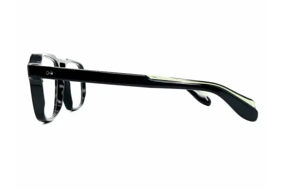 1969年、ロンドンにてオプティシアンだったグラハム・カトラーと、トニー・グロスの二人によって創業された、英国の老舗ブランド、CUTLER AND GROSS(カトラーアンドグロス)のCGOP1394です。クラシカルでオーセンティックなティアドロップ型のセルフレーム。ツーブリッジ仕様で、独特な雰囲気を持つ個性的な一本です。 黒縁フレームですが、テンプル内側にはグリーンの生地が貼られています。レンズを入れても素敵だと思います。