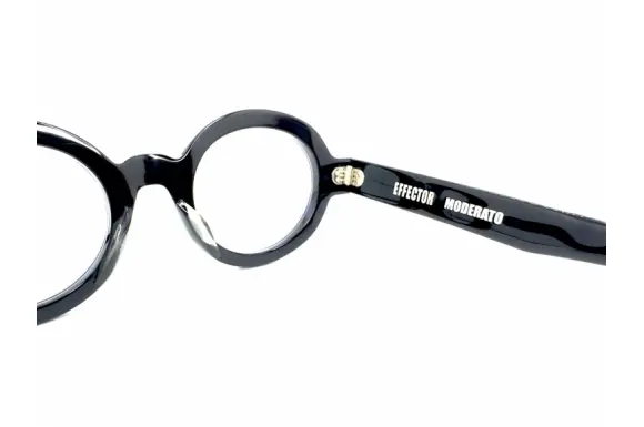 無骨で存在感たっぷりなデザインが特徴的で、“Rock On The Eyewear.”をコンセプトとするエフェクターのMODERATOです。6mm厚の重厚なリムにエッジを効かせたインパクトのあるラウンド型セルフレーム。太めのブリッジに、横へ張り出した智、幅広テンプルと繋がるボリューム感満点の一本。百合の飾り鋲も効いています。7枚蝶番仕様、個性的な丸眼鏡です。鯖江の職人による手仕事は、丁寧で間違いがありません。