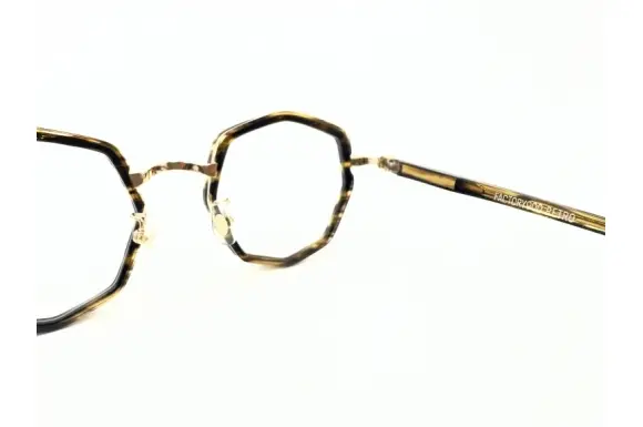 ファクトリー900の青山眼鏡が、そのデザイン力と技術力を注ぎつつ“半世紀前”から見た、“未来の眼鏡”を追求するというコンセプトの元製造される、ファクトリー900のセカンドライン FACTORY900 RETROのRF-055です。極厚でボリューム感たっぷりの存在感溢れるレトロフューチャーな一本。野暮ったさと重厚感を兼ね備えた多角形のコンビフレームです。