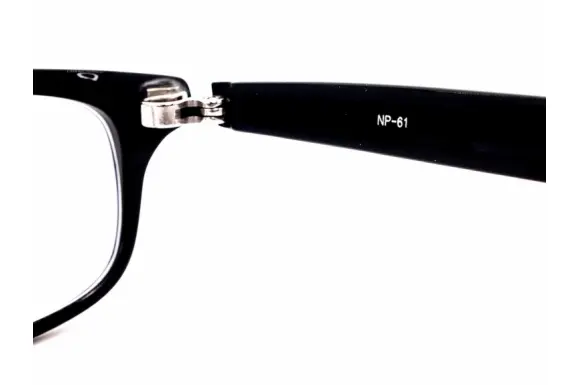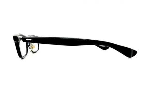 フォーナインズのNP-61です。クラッシカルなセルフレームですが、天地幅をかなり浅く設定し、細身なスタイルにしています。飾り鋲もかなりシャープにデザインされたスタイリッシュな一本です。独自の機構を搭載し、かけ心地を追求したフォーナインズらしい一本です。某カリスマご愛用の超人気モデルです。