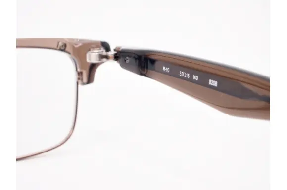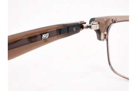 フォーナインズのM-93です。NP-45シリーズをベースに、より豊かな表情を備えたコンビブローフレームです。正面、側面、あらゆる角度から見ても印象的なその表情は、常に理想の眼鏡を求める人々の次なる一本として最良のスタイルとなっており、存在感のあるフロントと、細部の意匠や、独自の機構による機能性、品質の高さが魅力です。