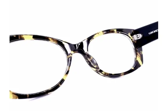 気分やTPOに合わせ、女性の魅力を引き立て、個性的で美しさを引き出してくれるアイウェア。女性にとってのメイクのように位置づけデザインされるフランシスクラインのGROHOです。妖艶な印象のセルフレーム。美しい生地使いにデザイン、フロントサイドに散りばめられたスタッズがちょっぴりハードで素敵です。