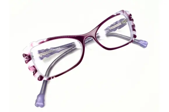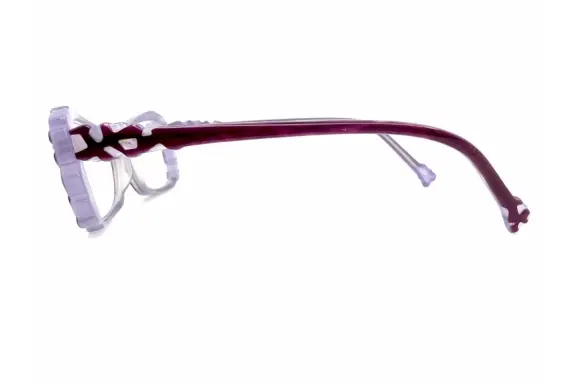 毎日森へ出掛け、森からエネルギーを受け、湧いたインスピレーションがデザインになっている、1995年よりスタートしたドイツのブランド、frost(フロスト)のGLORIAです。デザイナーのマリオンならではの、個性的なデザインに、生地づかいがとっても素敵なセルフレームです。