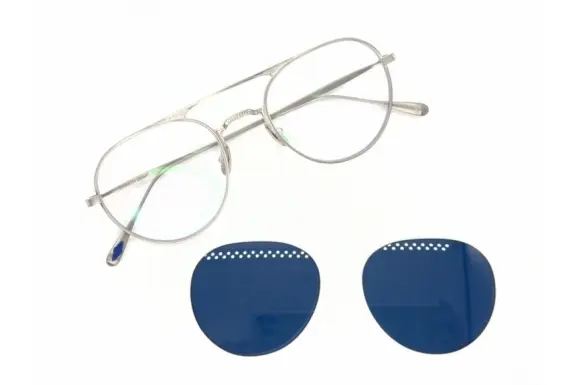 GLCO BLUE は、従来モデルを 日本製・ディテール強化 によって再構築した特別なコレクション。通常ラインより価格帯を一段引き上げ、ヴィンテージフレームから着想を得た特徴的なブリッジデザインや、スマートなテンプルには繊細なシダの葉モチーフの刻印が施されています。