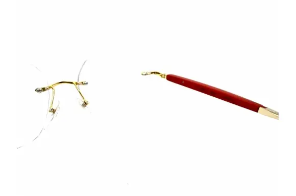 こちらのフレームはレンズに直接穴を開けて固定するタイプのフレームです。