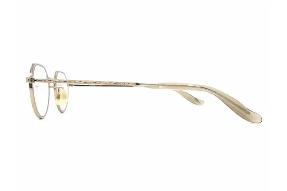 H-FUSIONの622です。「前時代的なデザインへのHommage(オマージュ)」。1960~80年代のデザインをリソースし、「クラシックでありながらモード」という矛盾しそうなスタイルをひとつにカタチにした眼鏡、エイチフューフュージョン。クラシカルでありつつ洗練された上品な佇まいが美しいクラウンパント型のサンプラチナ製メタルフレームです。サンプラチナ(SPM)は、堅く独特の質感を持ち、耐食性、身体との親和性に優れて医療用にも用いられる合金で、金属アレルギーも引き起こしにくい素材です。