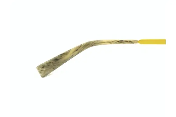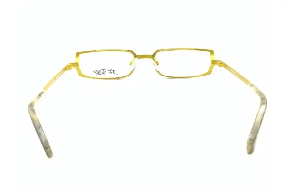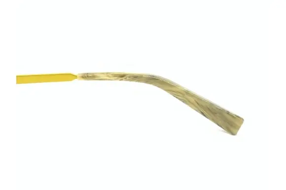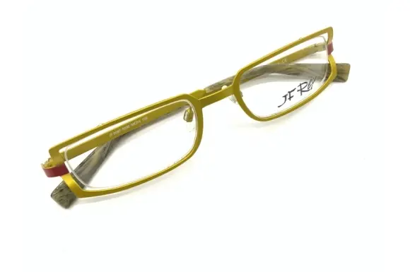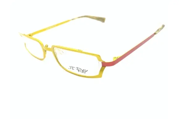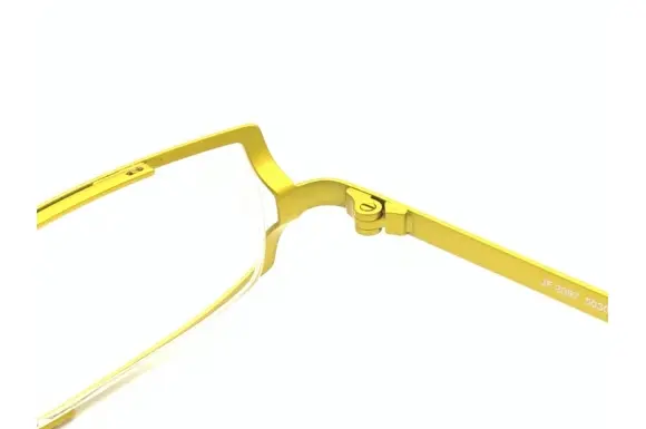 J.F.REYよりJF2097です。サイドから見ると目尻部分のメタルパーツがヨロイ部分へ落ち窪んでいくようなデザインとなっており、立体的なデザインのフレームです。カラーはフロントとテンプル内側がイエロー、テンプル外側はレッドで個性的な配色になっています。