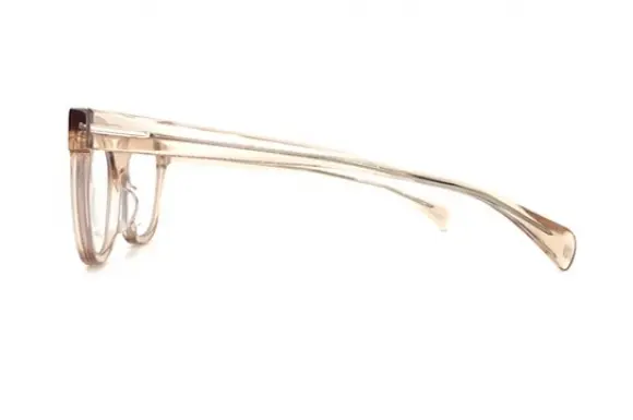 ジャックデュランのRAIKOKE Lです。アランミクリ・スタルクアイズのプロダクトマネージャーでもあったジャックデュラン。シンプルでありながら、革新的でユニークなデザインは見る人を魅了します。やや癖のある個性的で、存在感溢れる変則型のセルフレーム。クリアピンクベージュの美しい生地や、のっぺりフラットなフロントデザインがユニークな一本です。