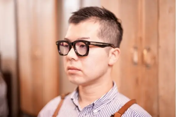 J.M.M特有のこだわりが光るこのデザインは、名作『DEVAUX』や『SCHINDLER』とのコラボレーションモデルを思わせるコンパクトなスタイルを持ち、特注の8mm厚アセテート生地とシャープなエッジを残したカッティングにより独自の存在感。
